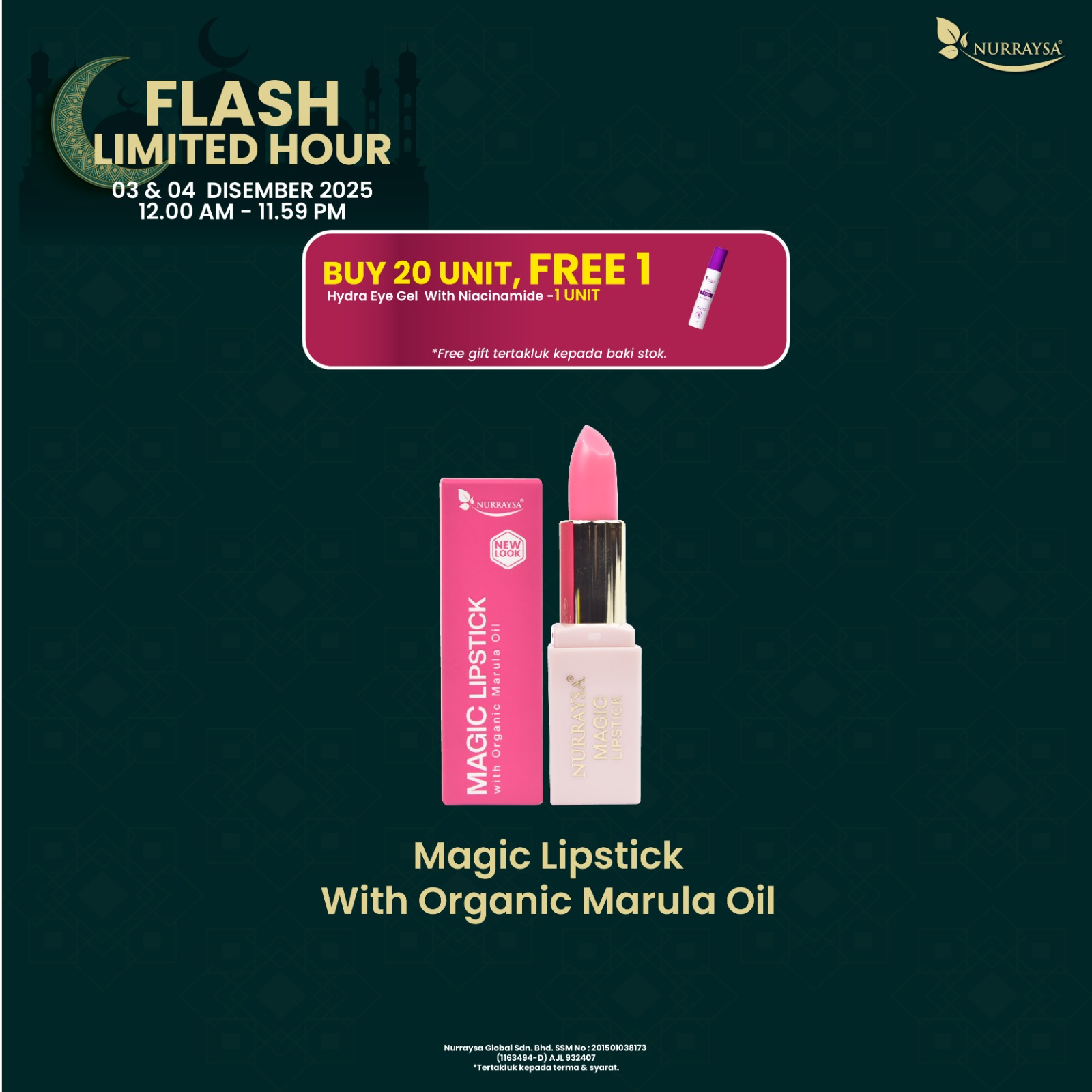 Promosi Produk Pilihan Halal 11 Nov-09 Dis : 20 Unit Magic Lipstick with Marula Oil