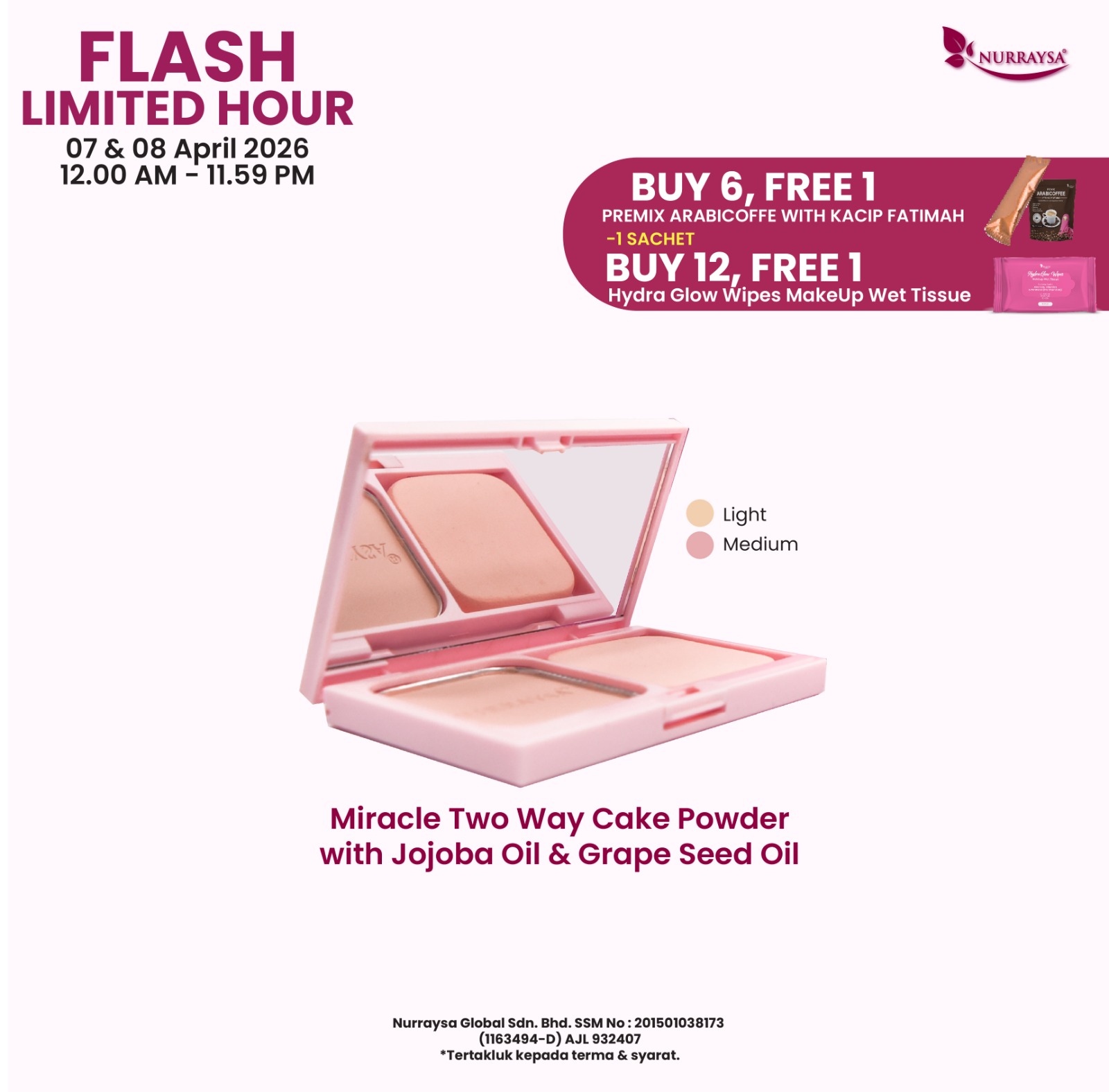 Promosi Cantik DiHari Raya 12-15 Mac : 1 Unit Miracle Two Way Cake Powder With Jojoba Oil
