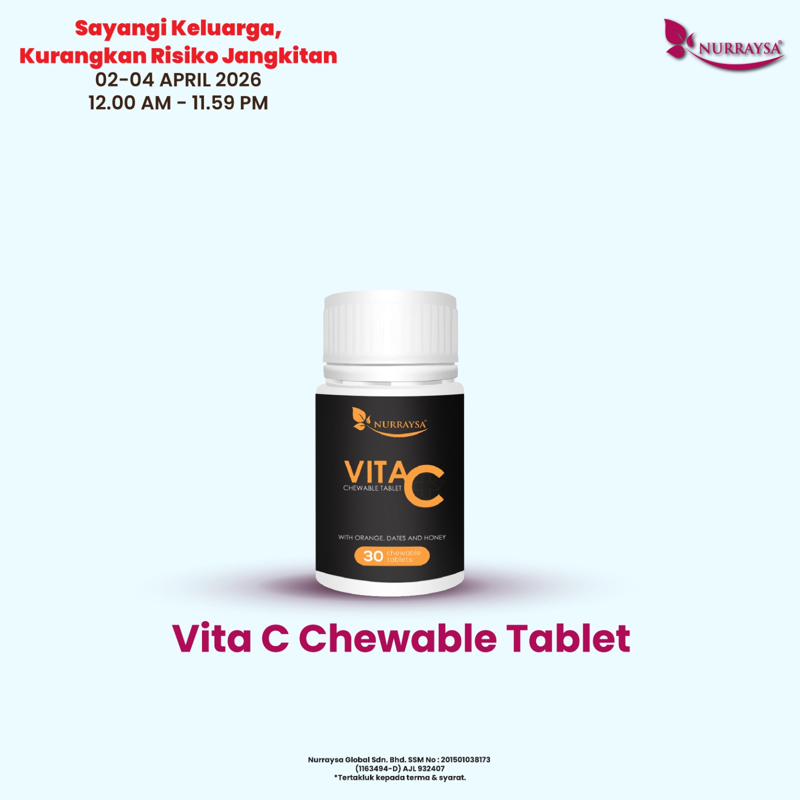 Nurraysa Beauty Raya 11 Mac-09 April : 3 Unit Vita C Chewable Tablet