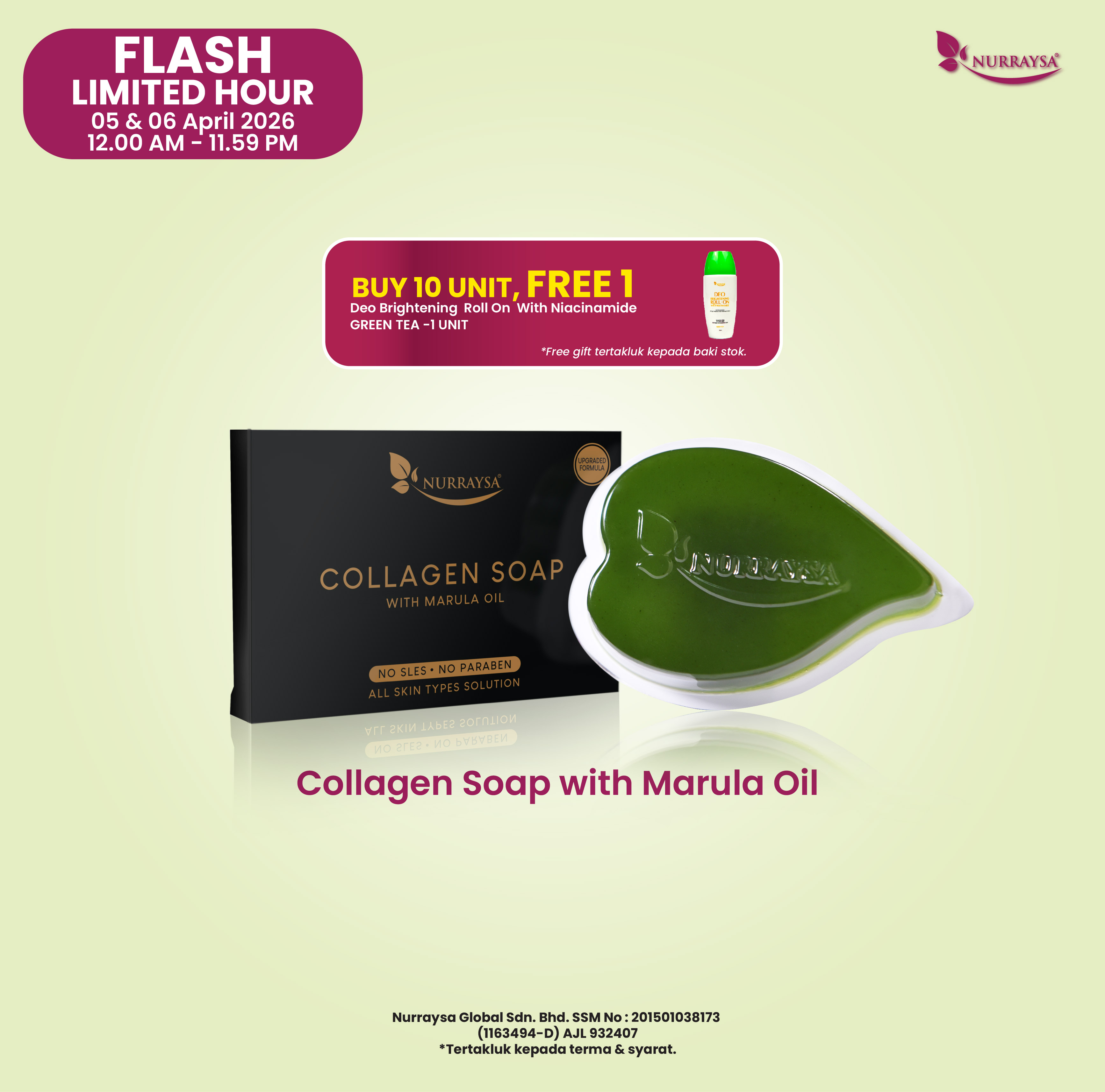 Nurraysa Beauty Raya 11 Mac-09 April : 10 Unit Collagen Soap With Marula Oil