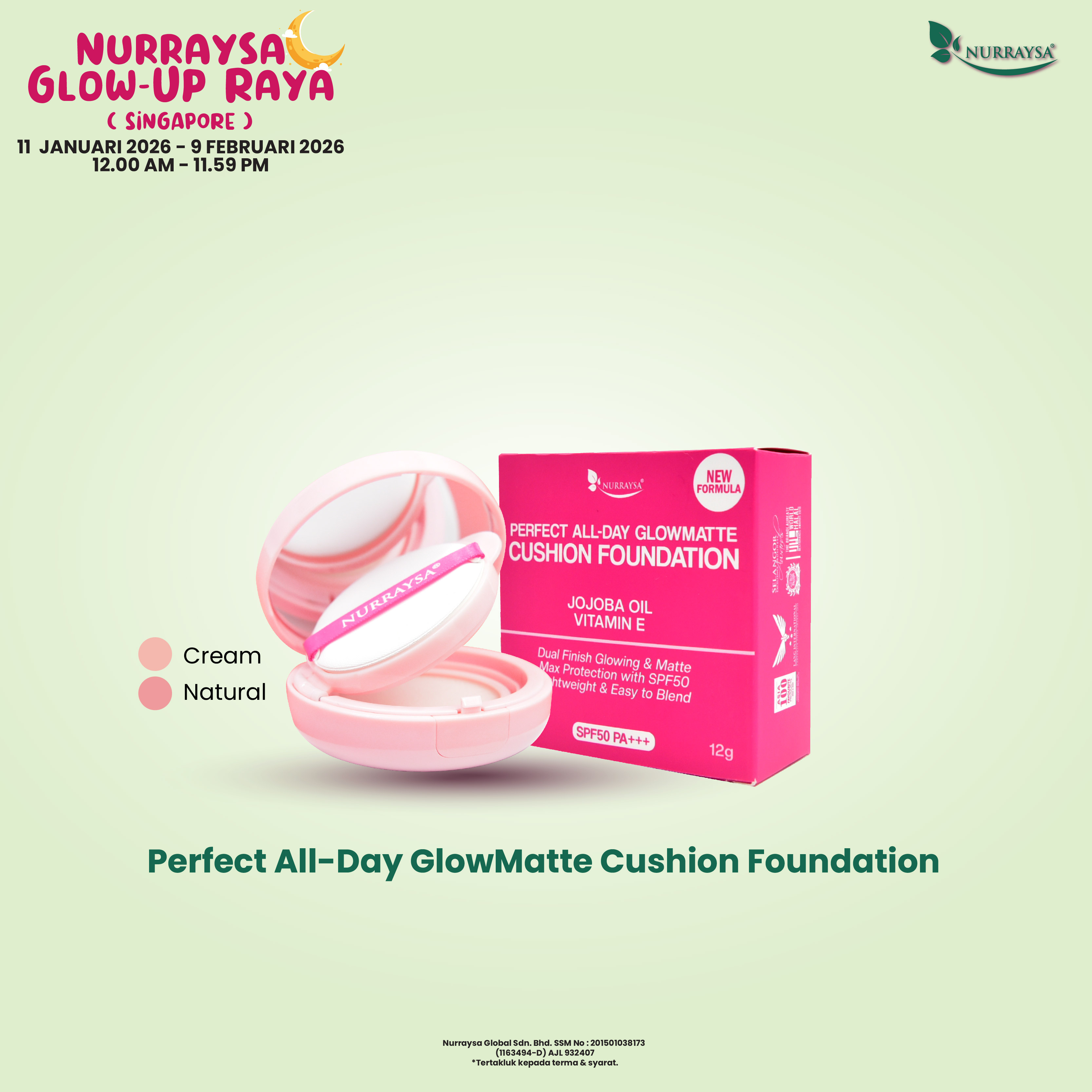 Nurraysa Glow-Up Raya 11 Januari-09 Februari : 10 Unit GlowMatte Cushion Foundation (SGD)