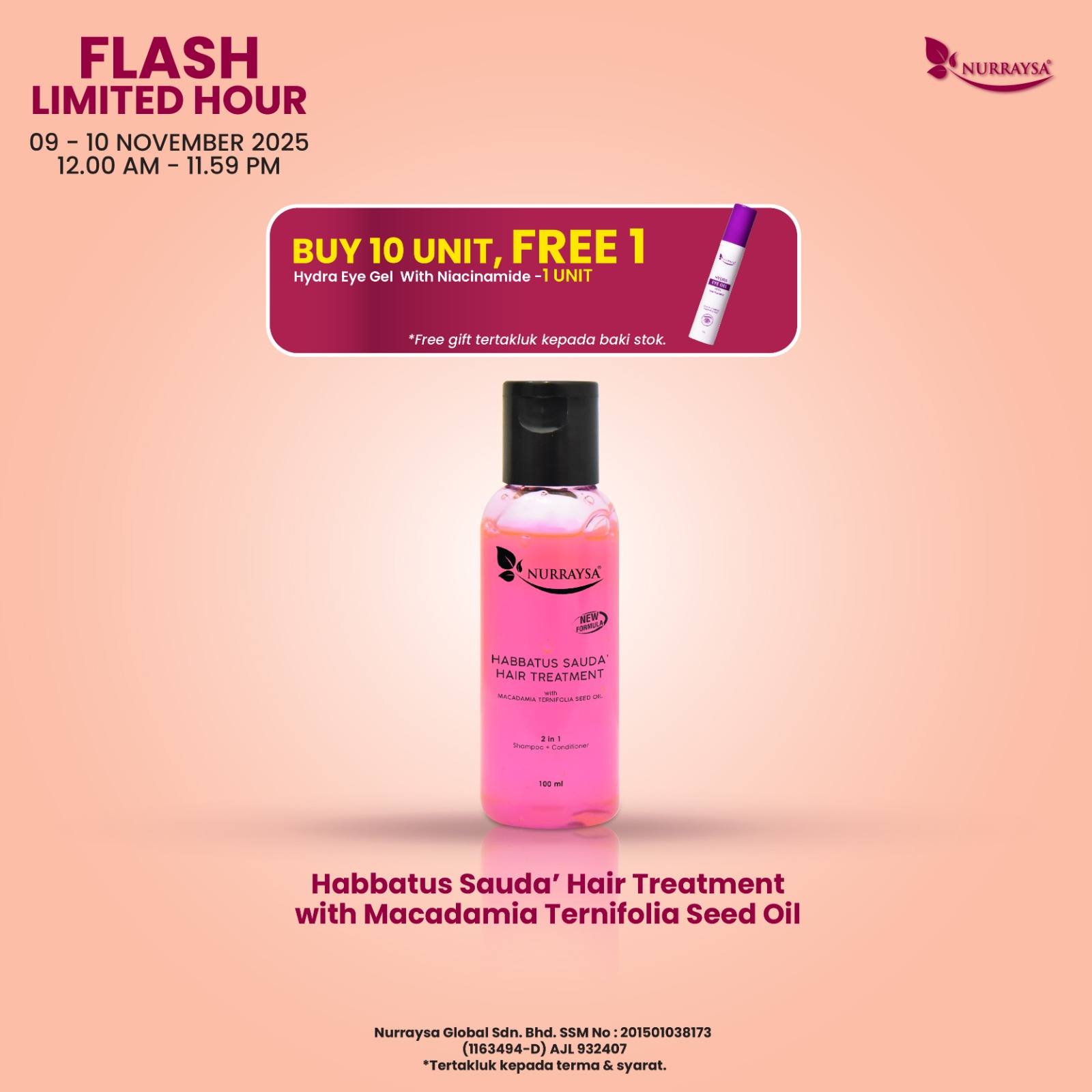 Flash Limited Hour 09-10 November : 10 Unit Habbatus Sauda'Hair Treatment