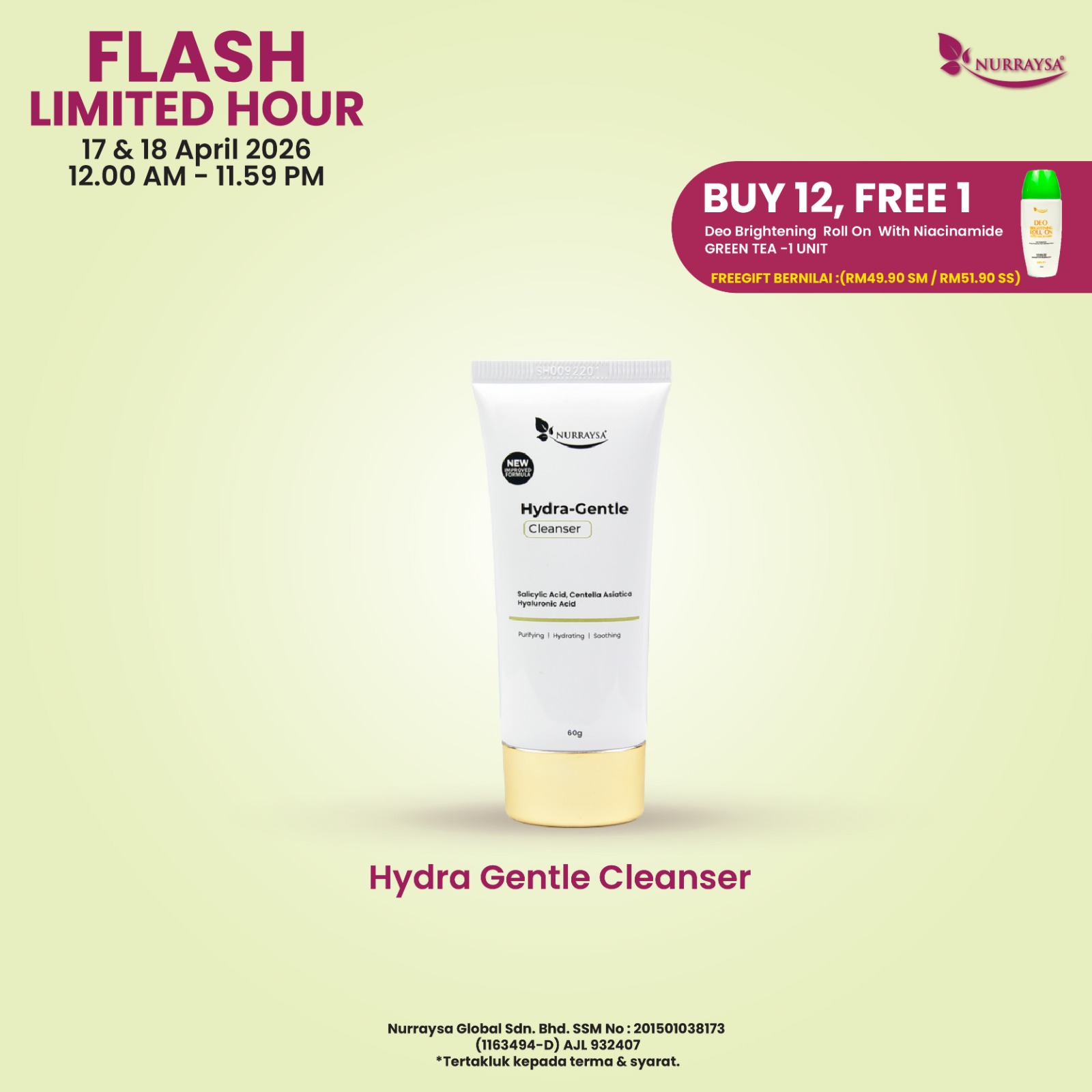 Flash Limited Hour 17-18 April : 1 Unit Hydra Gentle Cleanser