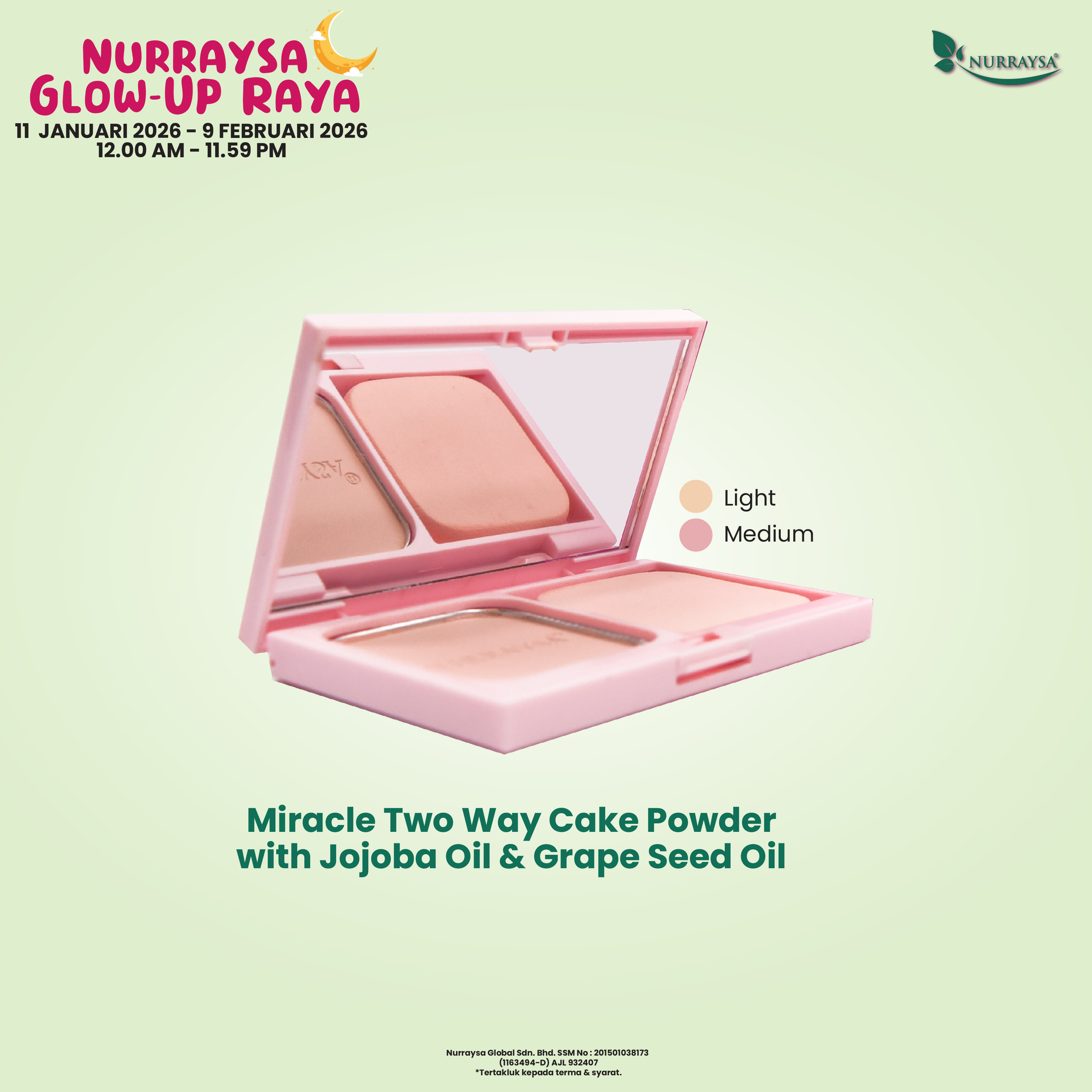 - • Miracle Two Way Cake Powder With Jojoba Oil & Grape Seed Oil - Light ~ Expired Date : 22/10/2028 (MYR)