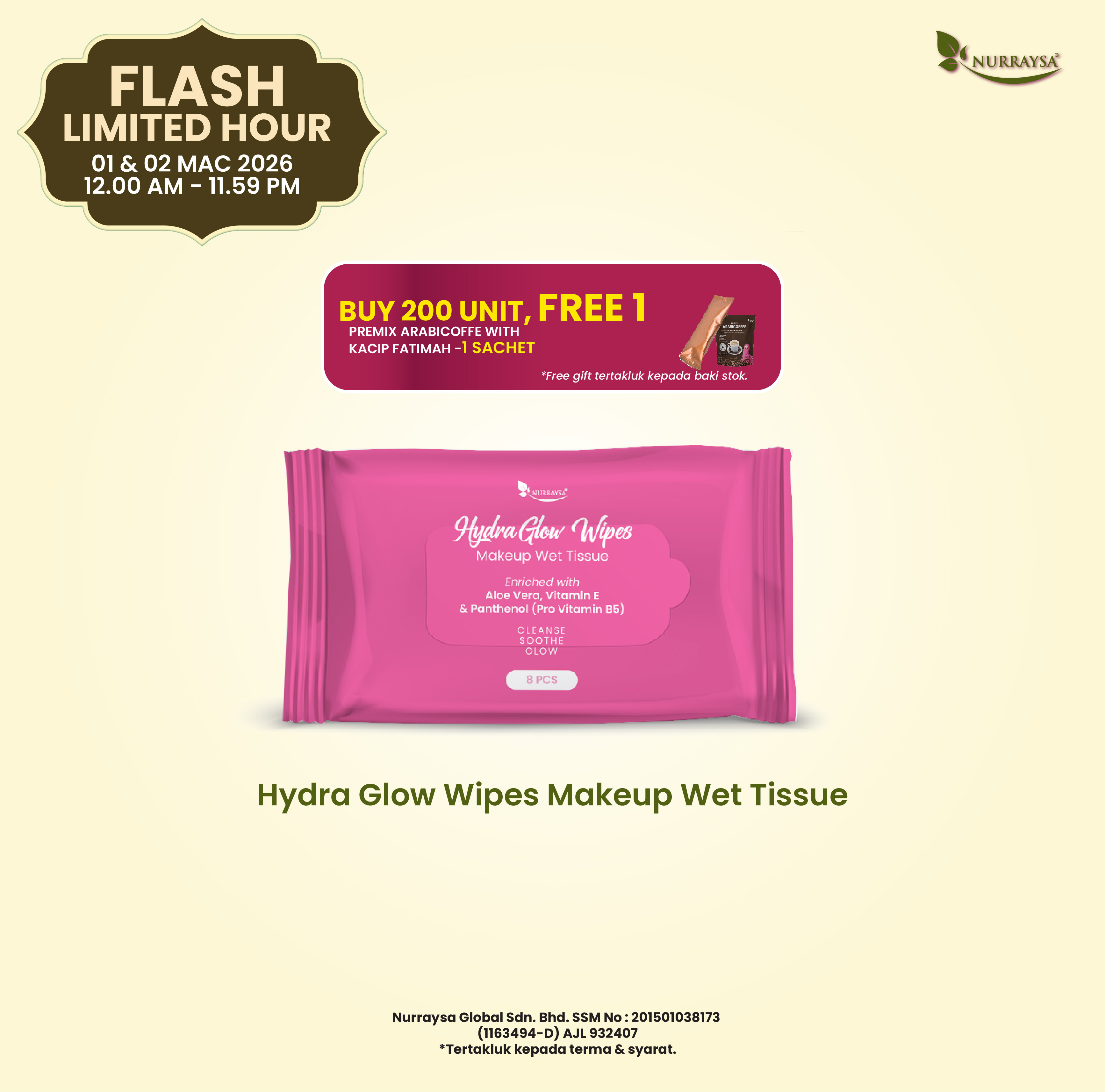 Flash Limited Hour 01-02 Mac : 200 Unit Hydra Glow Wipes MakeUp Wet Tissue