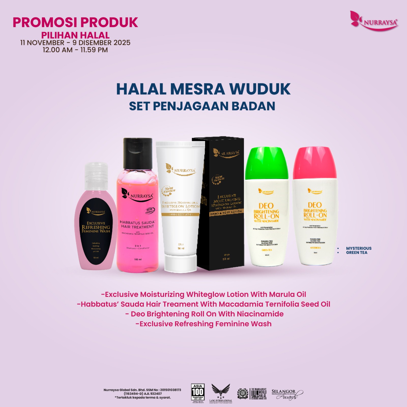 Promosi Produk Pilihan Halal 11 Nov-09 Dis : 1 Set Penjagaan Badan (SM/SS)