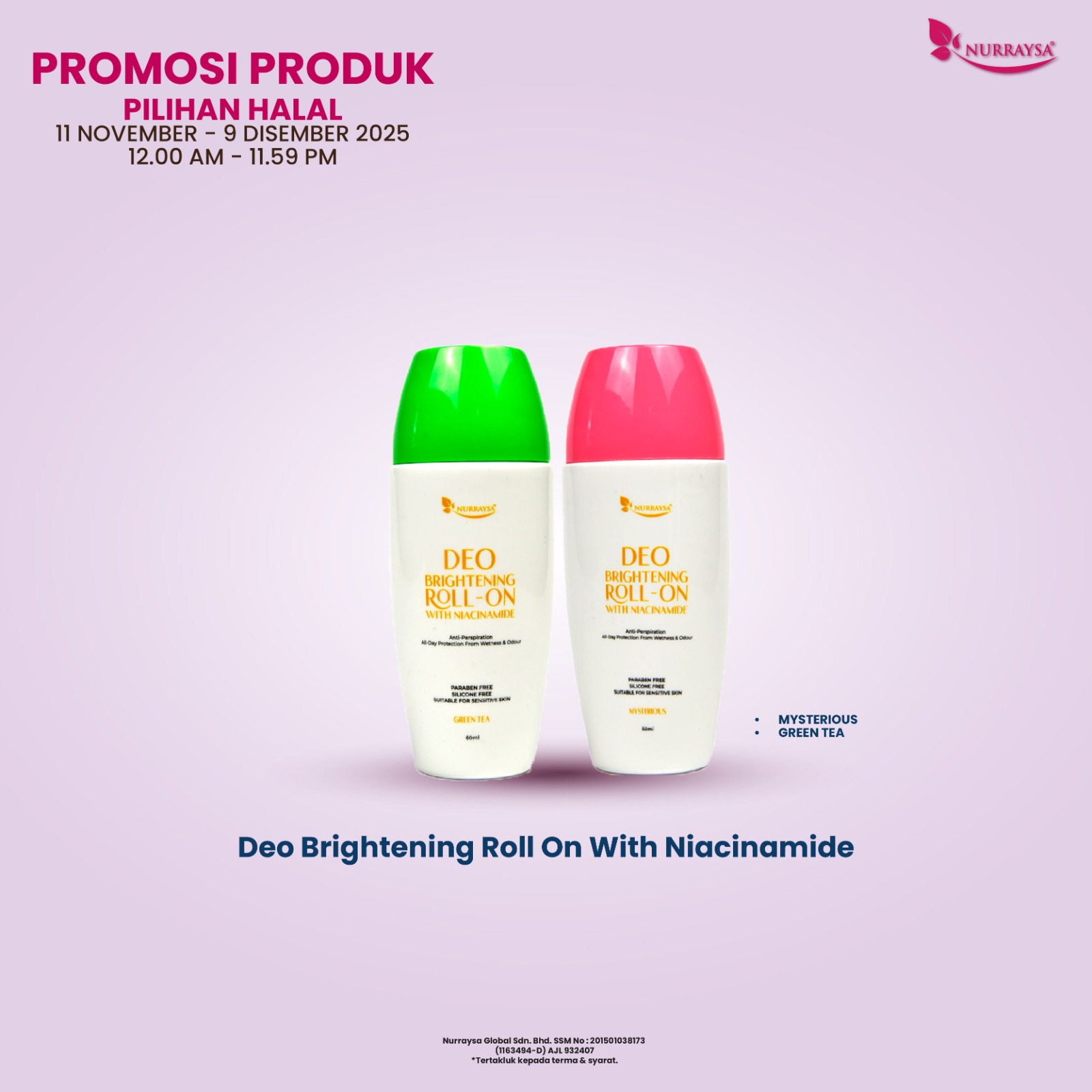 Promosi Produk Pilihan Halal 11 Nov-09 Dis : 3 Unit Deo Brightening Roll On (SM/SS)