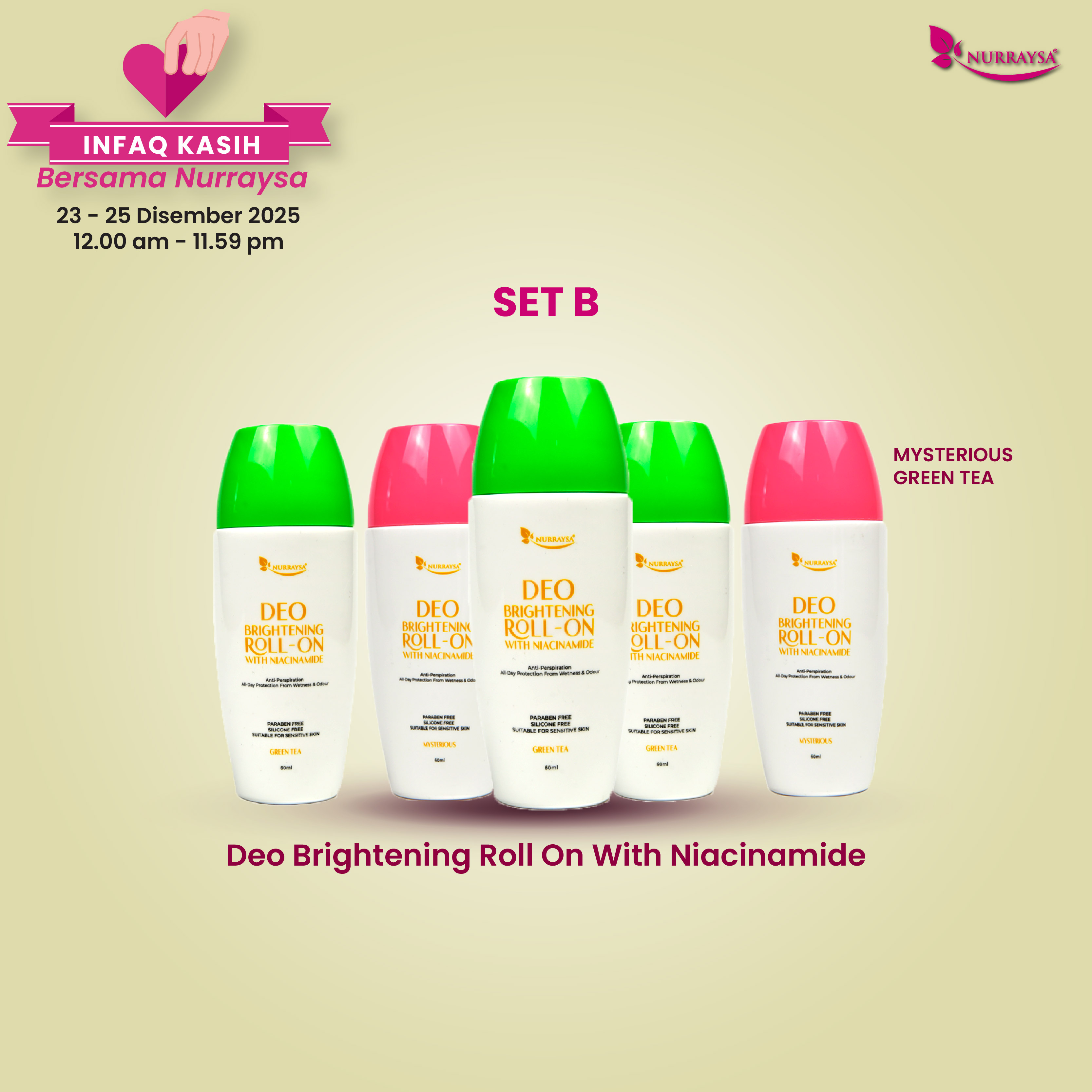 Infaq Kasih Bersama Nurraysa 23-25 Disember : 5 Unit Deo Brightening Roll On With Niacinamide