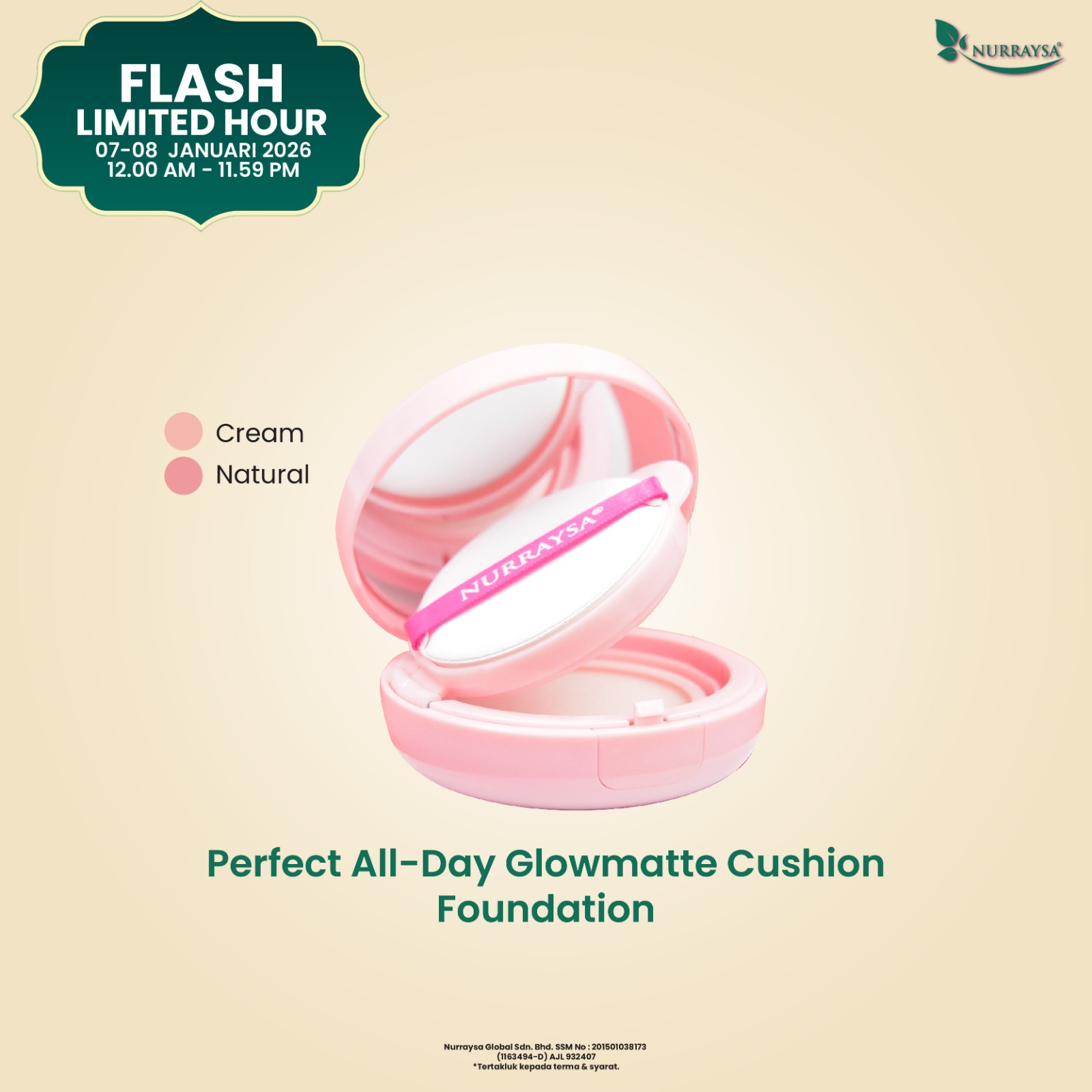 Raya Early Bird Beauty Sale 11 Disember-09 Januari : 10 Unit GlowMatte Cushion Foundation