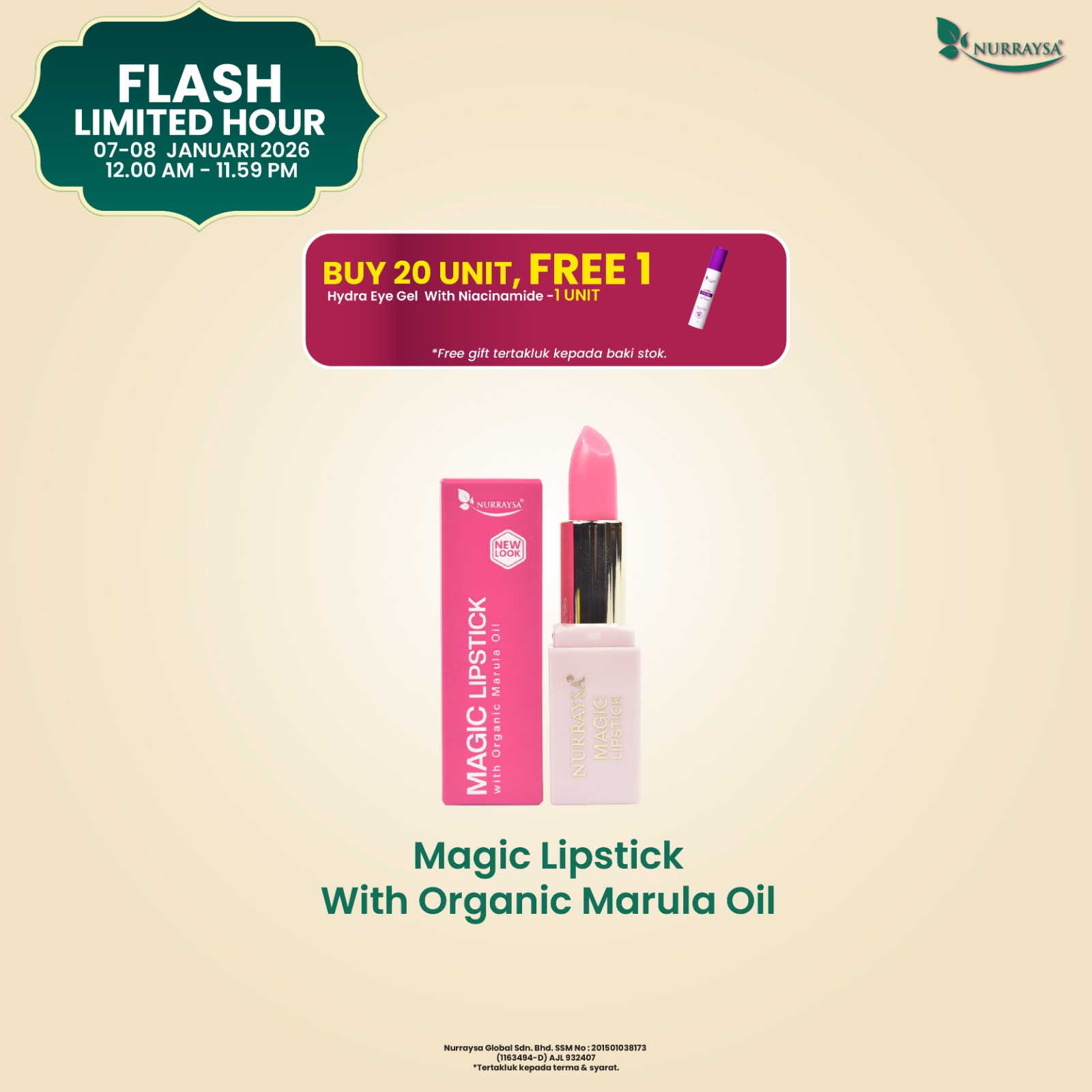 Raya Early Bird Beauty Sale 11 Disember-09 Januari : 20 Unit Magic Lipstick with Marula Oil