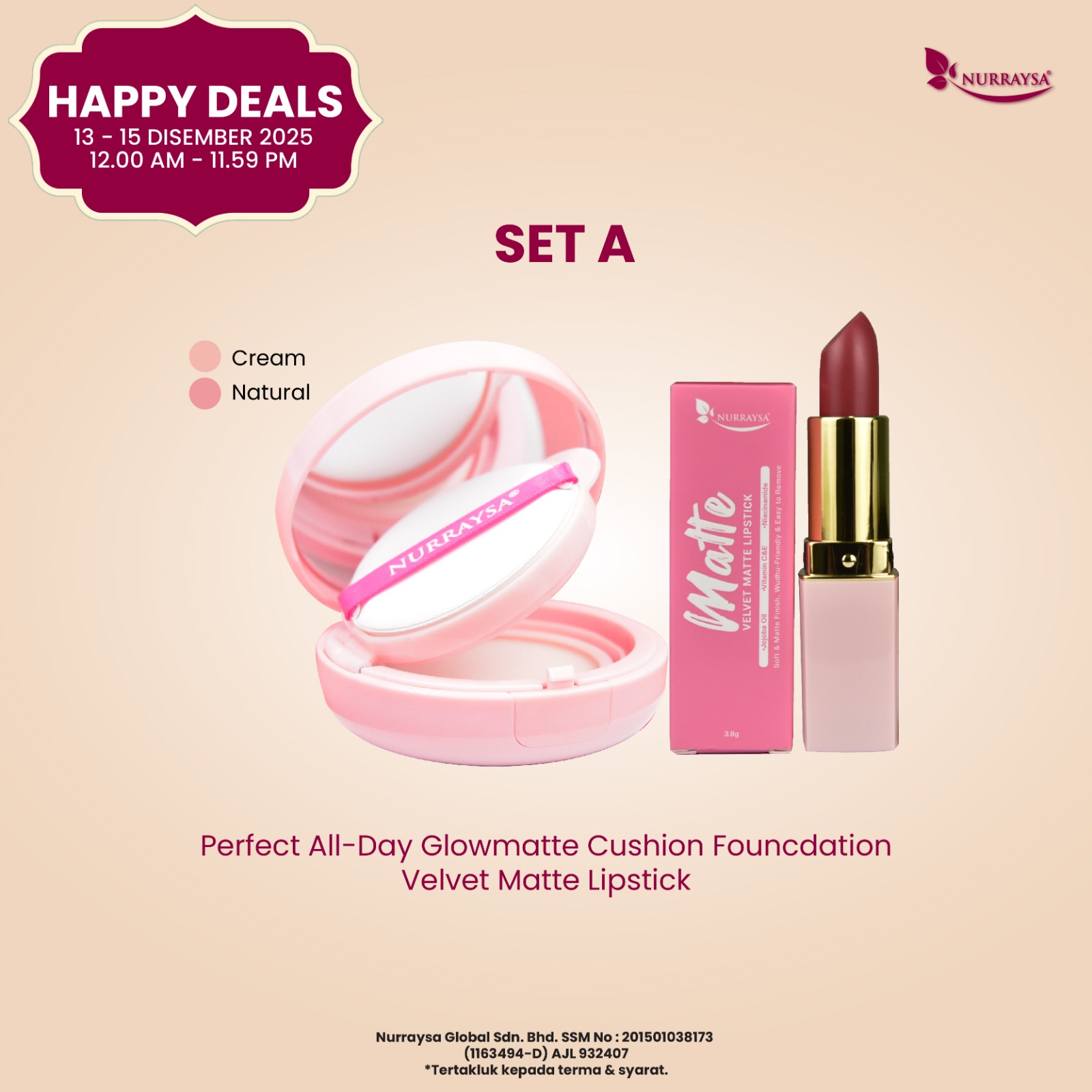 Happy Deals 01-03 Disember : Set A (Magic Lipstick+Cushion FD+Twcp+Velvet Matte)