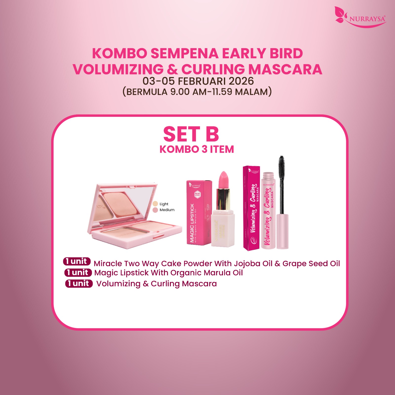 Raya Early Bird Beauty Sale 11 Disember-09 Januari : 1 Set Mekap Menawan (SM/SS)