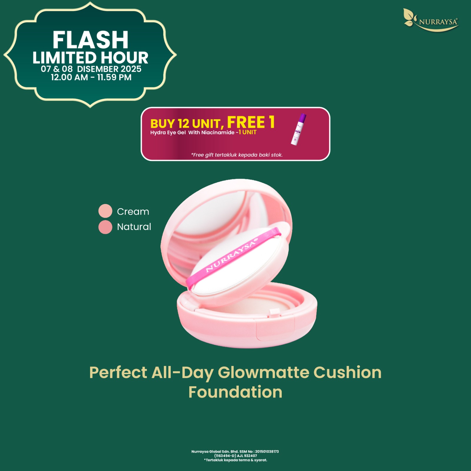 Flash limited Hour 07-08 Disember : 12 Unit Perfect All-Day GlowMatte Cushion Foundation