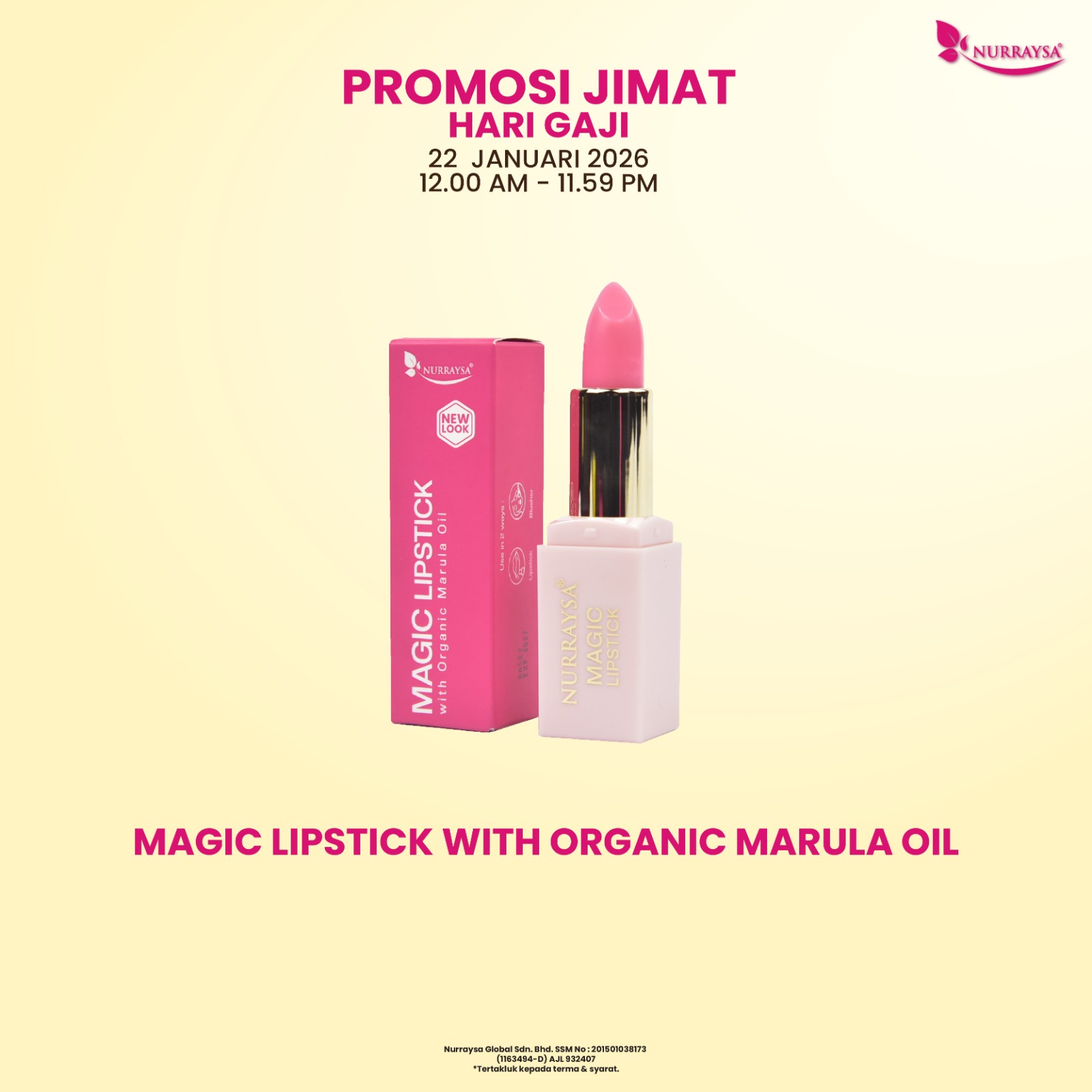 Nurraysa Glow-Up Raya 11 Januari-09 Februari : 20 Unit Magic Lipstick with Marula Oil