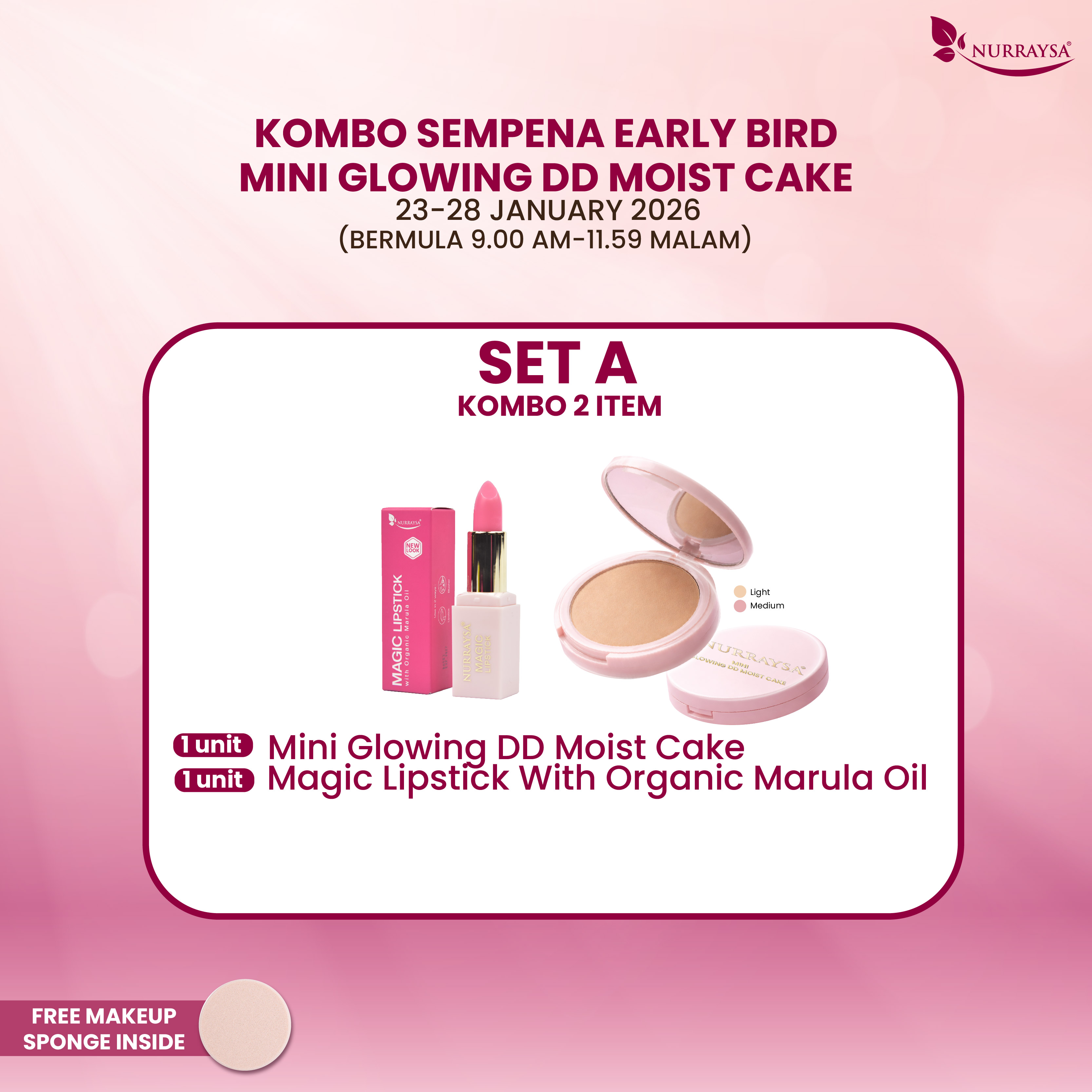 Sempena Early Bird Mini Glowing DD Moist Cake 23-28 Januari : Set A