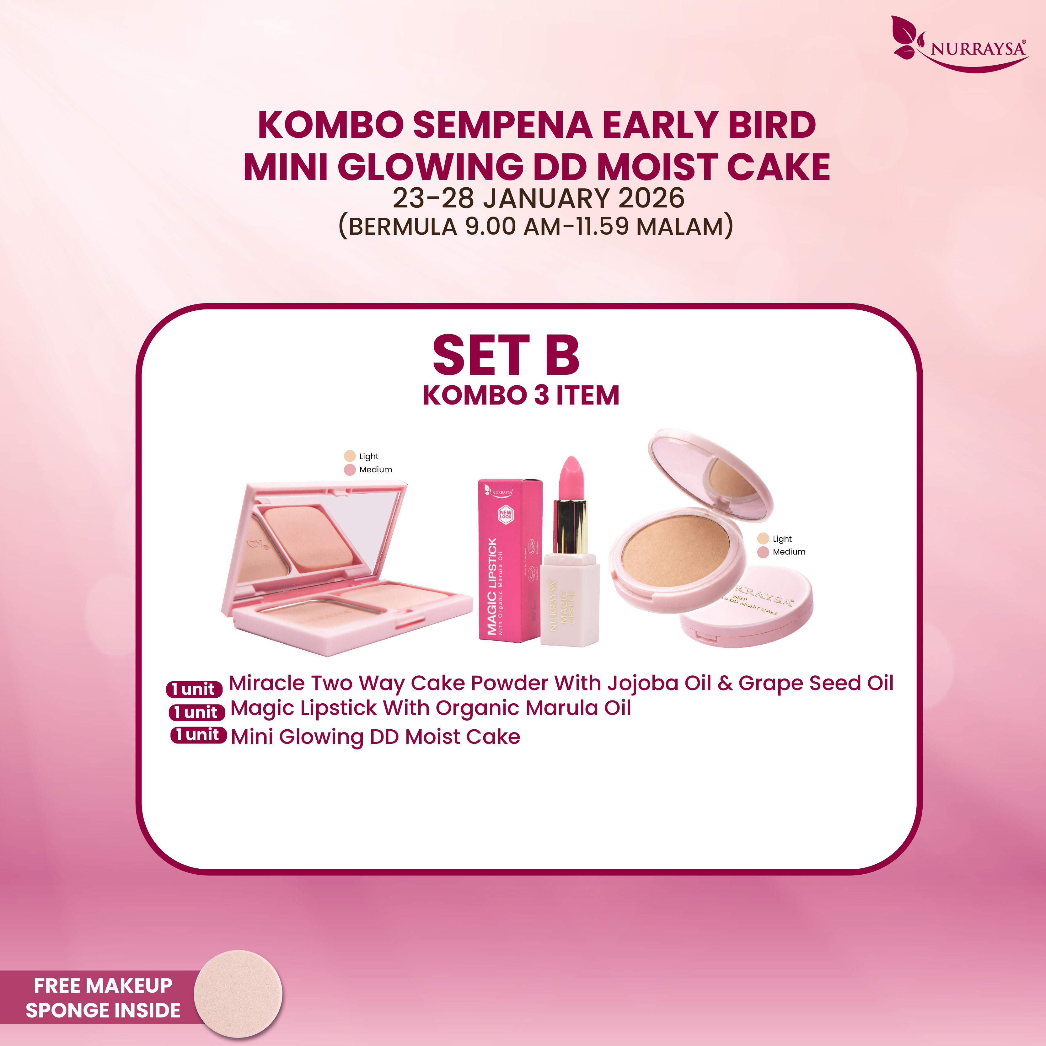 Sempena Early Bird Mini Glowing DD Moist Cake 23-28 Januari : Set B