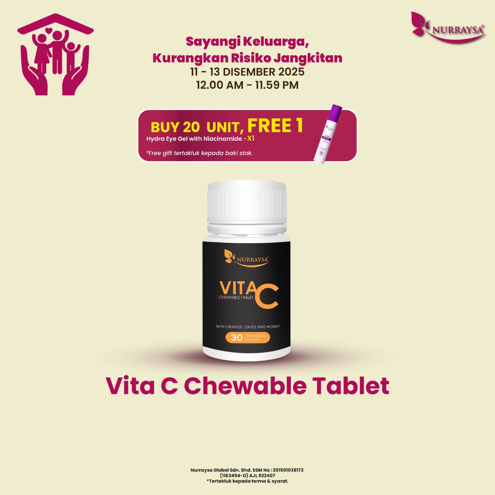 Sayangi Keluarga, Kurangkan Risiko Jangkitan 11-13 Disember : 3 Unit Vita C Chewable Tablet
