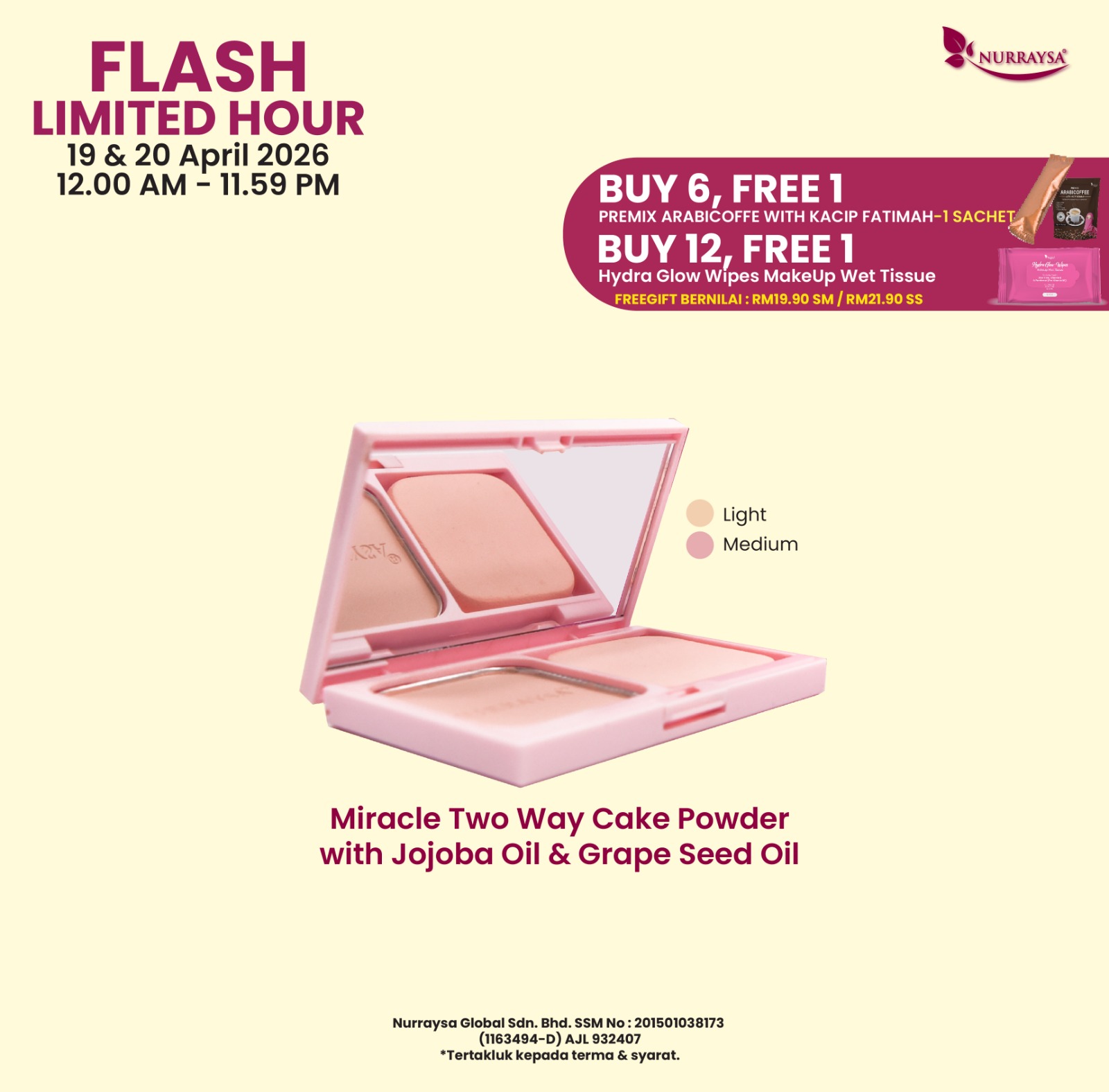 Promosi Cantik DiHari Raya 12-15 Mac : 1 Unit Miracle Two Way Cake Powder With Jojoba Oil
