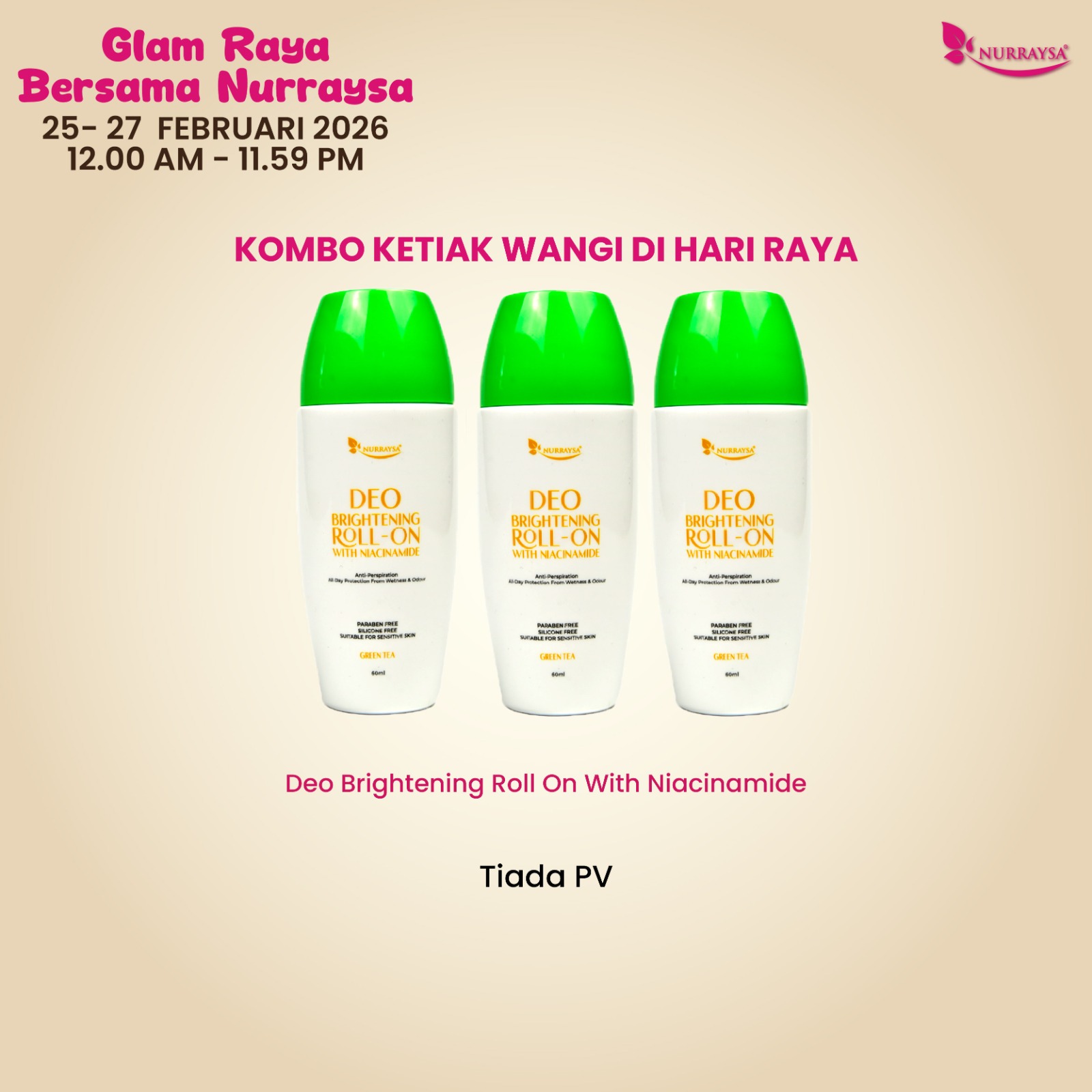 Glam Raya Bersama Nurraysa 25-27 Februari : Kombo Ketiak Wangi Di Hari Raya (TIADA PV)
