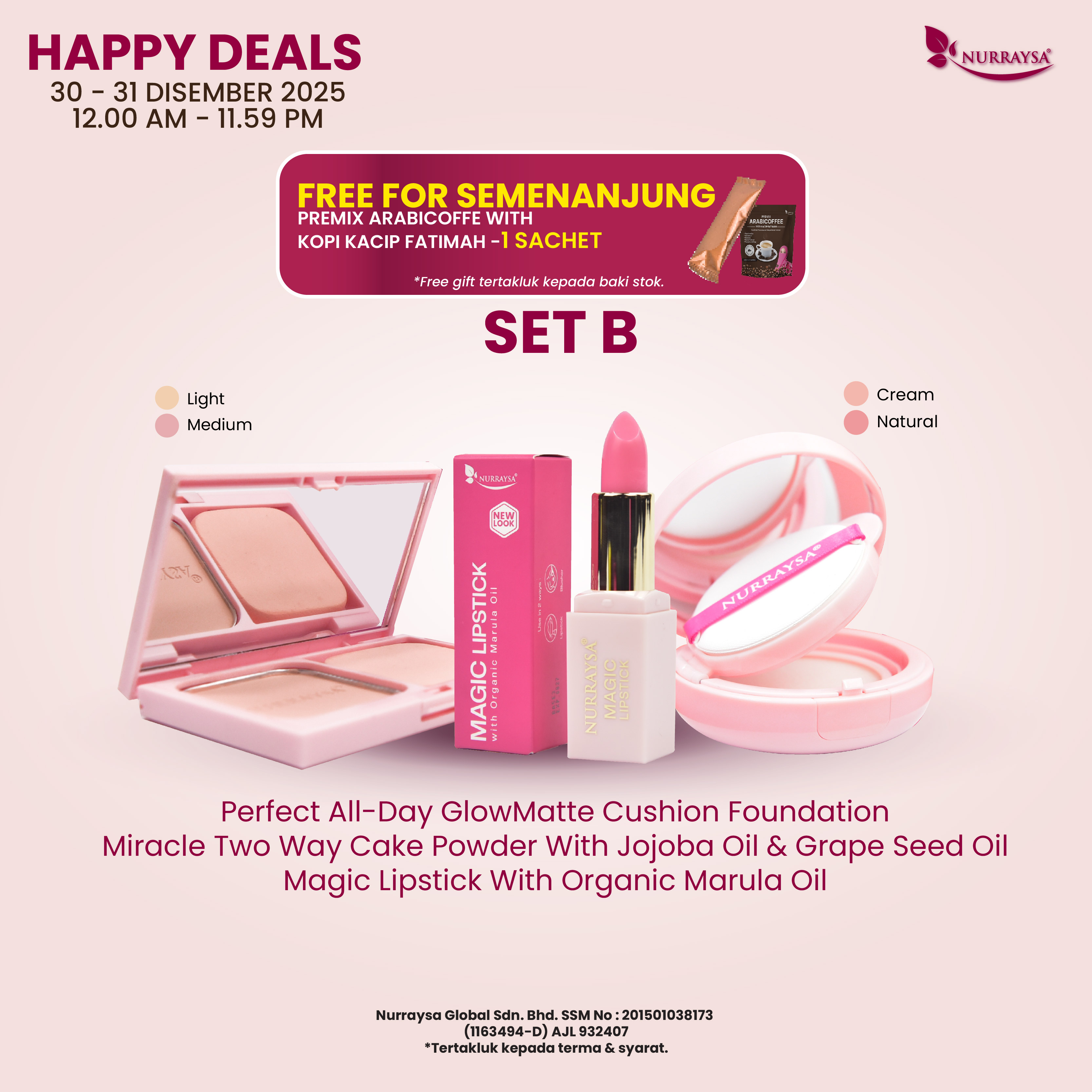 Happy Deals 30-31 Disember : Set B (Cushion FD+Magic Lipstick+Twcp)
