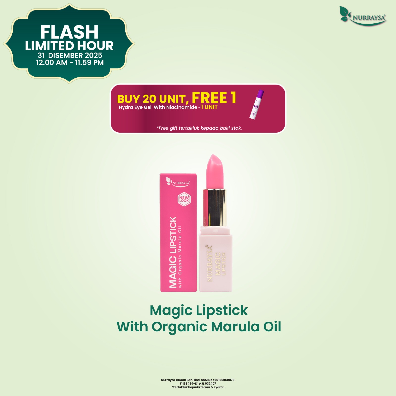 Flash Limited Hour 31 Disember : 1 Unit Magic Lipstick With Organic Marula Oil