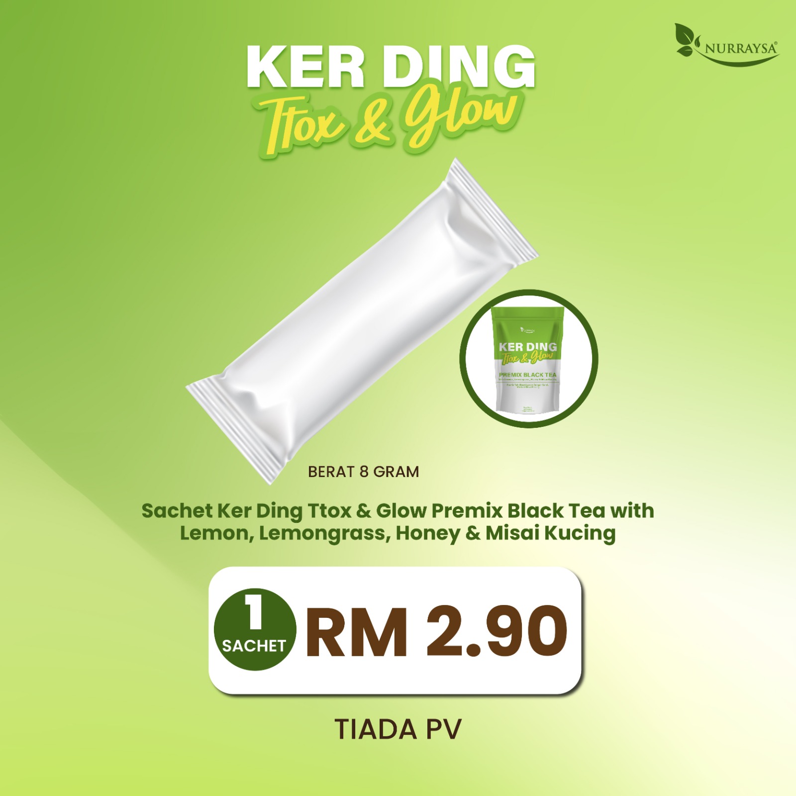 1 Sachet Ker Ding Ttox & Glow (Premix Black Tea with Lemon, Lemongrass, Honey & Misai Kucing)