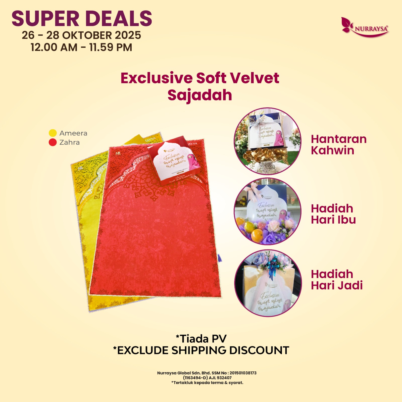 Super Deals 26-28 Oktober : 1 Unit Exclusive Soft Velvet Sajadah (TIADA PV)