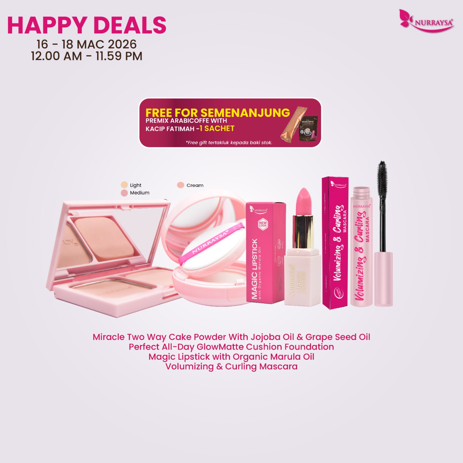 Nurraysa Beauty Raya 11 Mac-09 April : 1 Set Hotset Raya (Cushion FD)