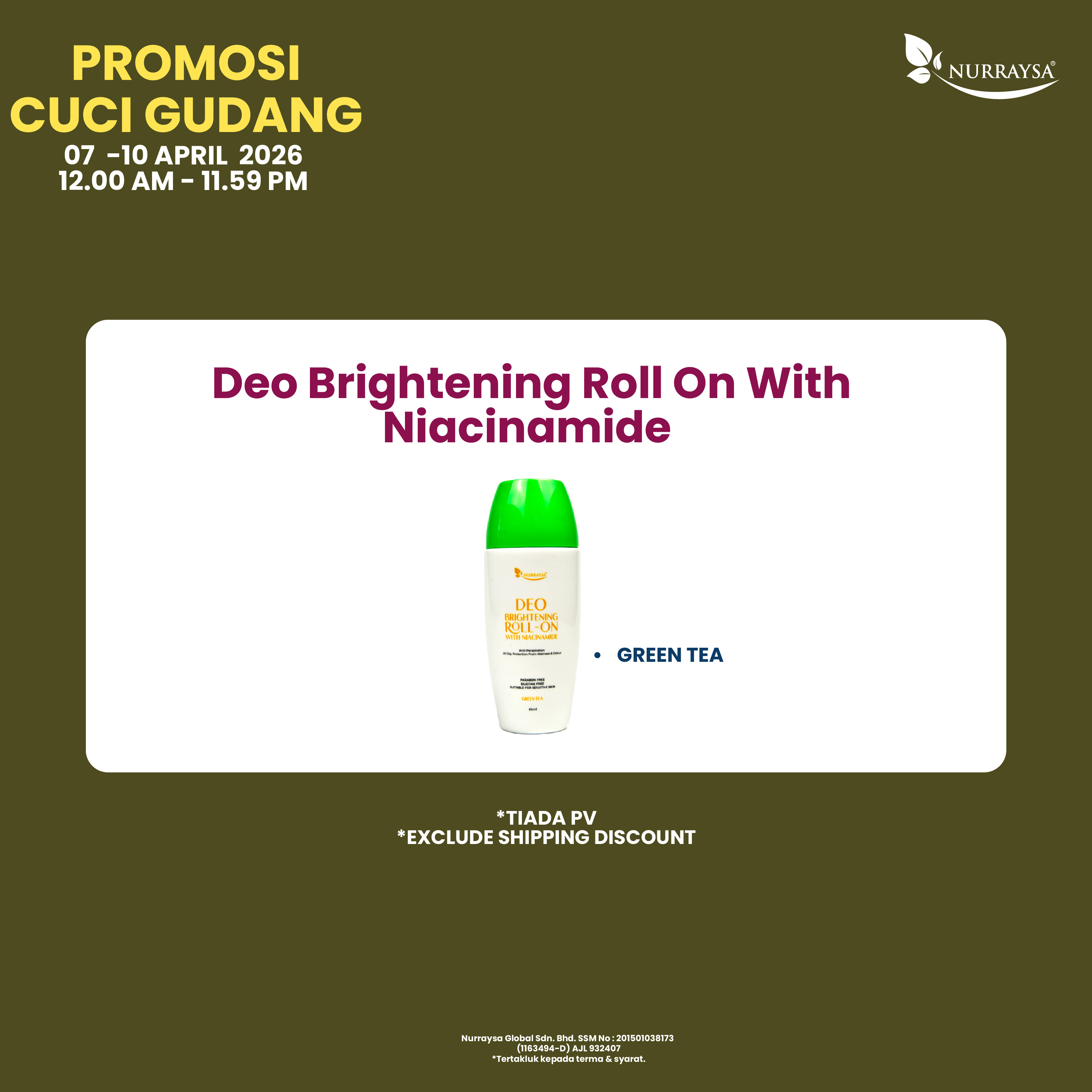 Promosi Cuci Gudang 07-10 April : 1 Unit Deo Brightening Roll (TIADA PV)