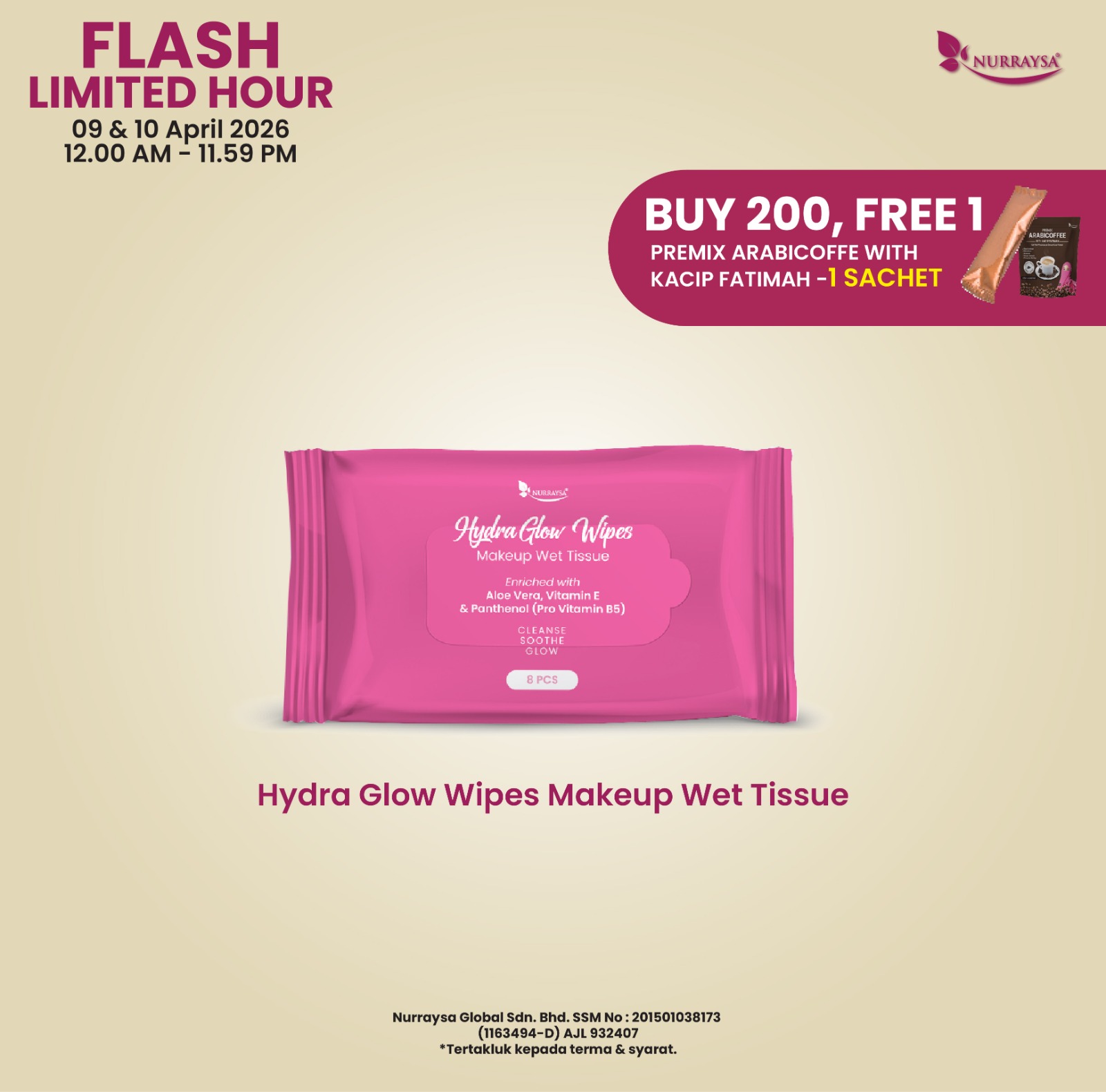 Flash Limited Hour 09-10 April : 200 Unit Hydra Glow Wipes MakeUp Wet Tissue