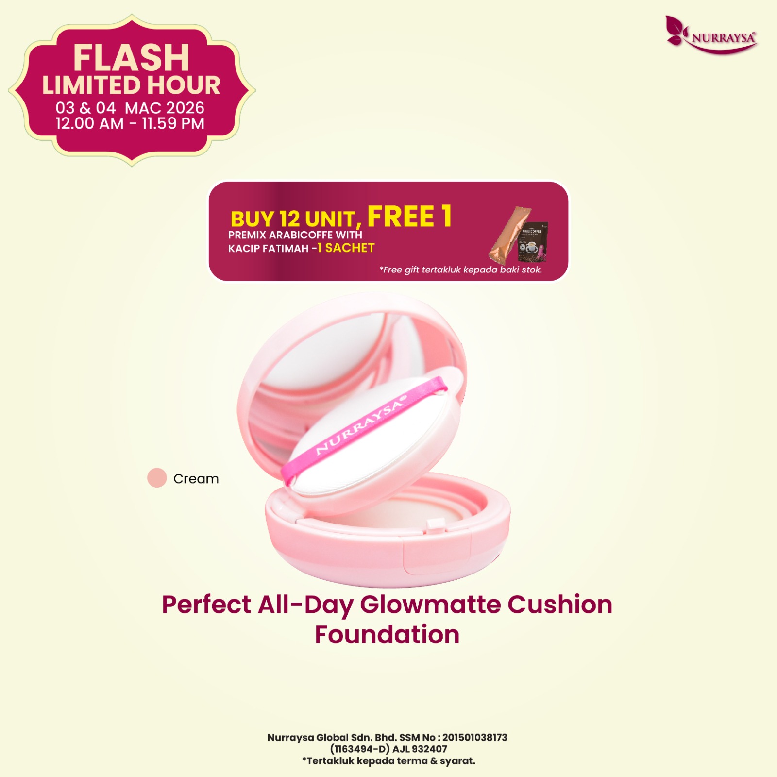 Meriah Raya Bersama Nurraysa 11 Feb-09 Mac : 1 Set Mekap Flawless Raya (SM/SS)