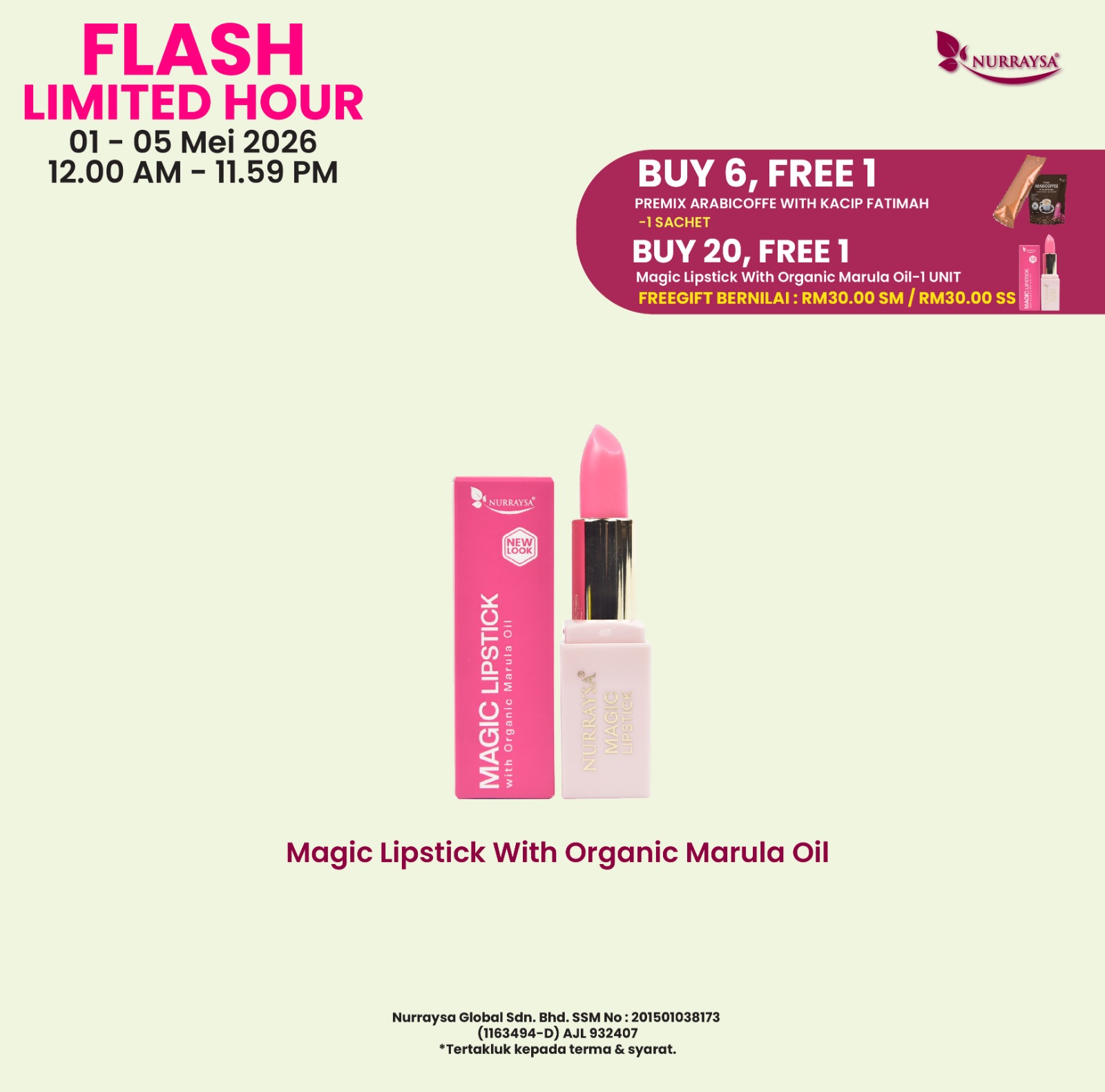 Flash Limited Hour 19-20 April : 20 Unit Magic Lipstick With Organic Marula Oil