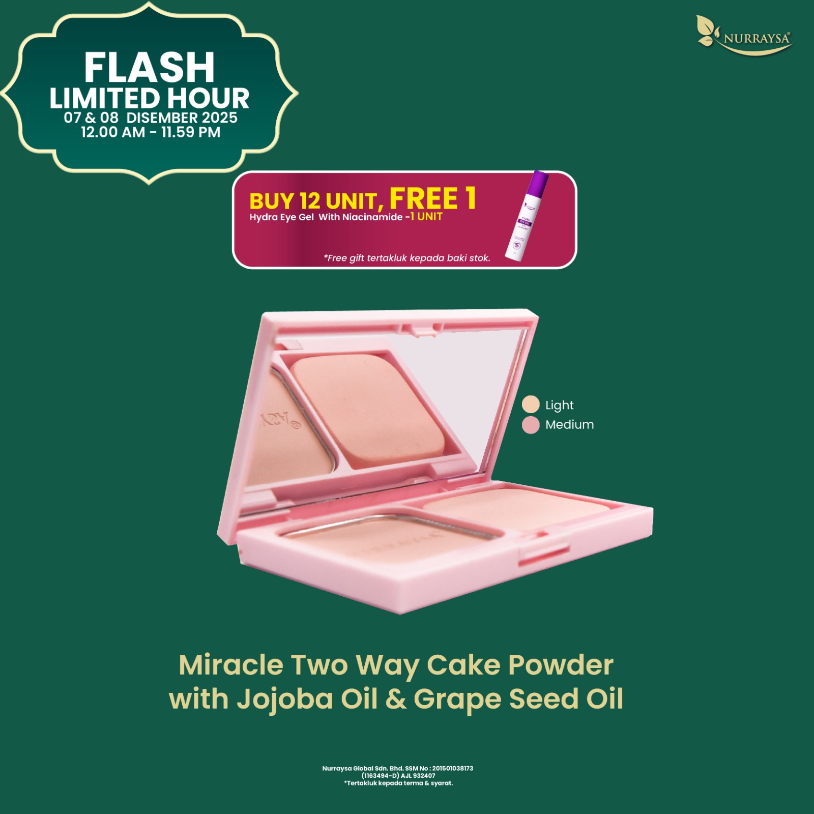 Flash limited Hour 07-08 Disember : 12 Unit Miracle Two Way Cake Powder