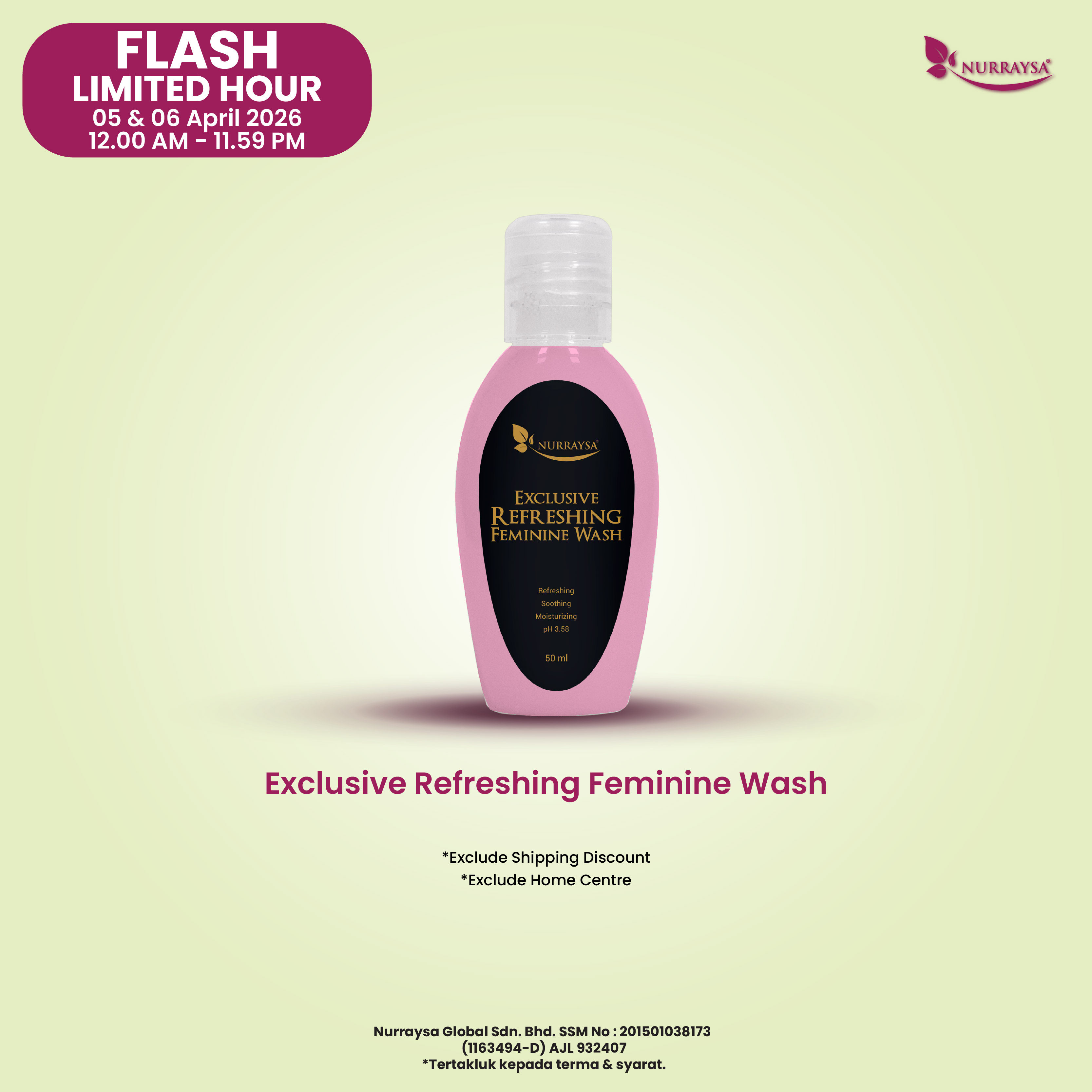 Nurraysa Beauty Raya 11 Mac-09 April : 10 Unit Exclusive Refreshing Feminine Wash