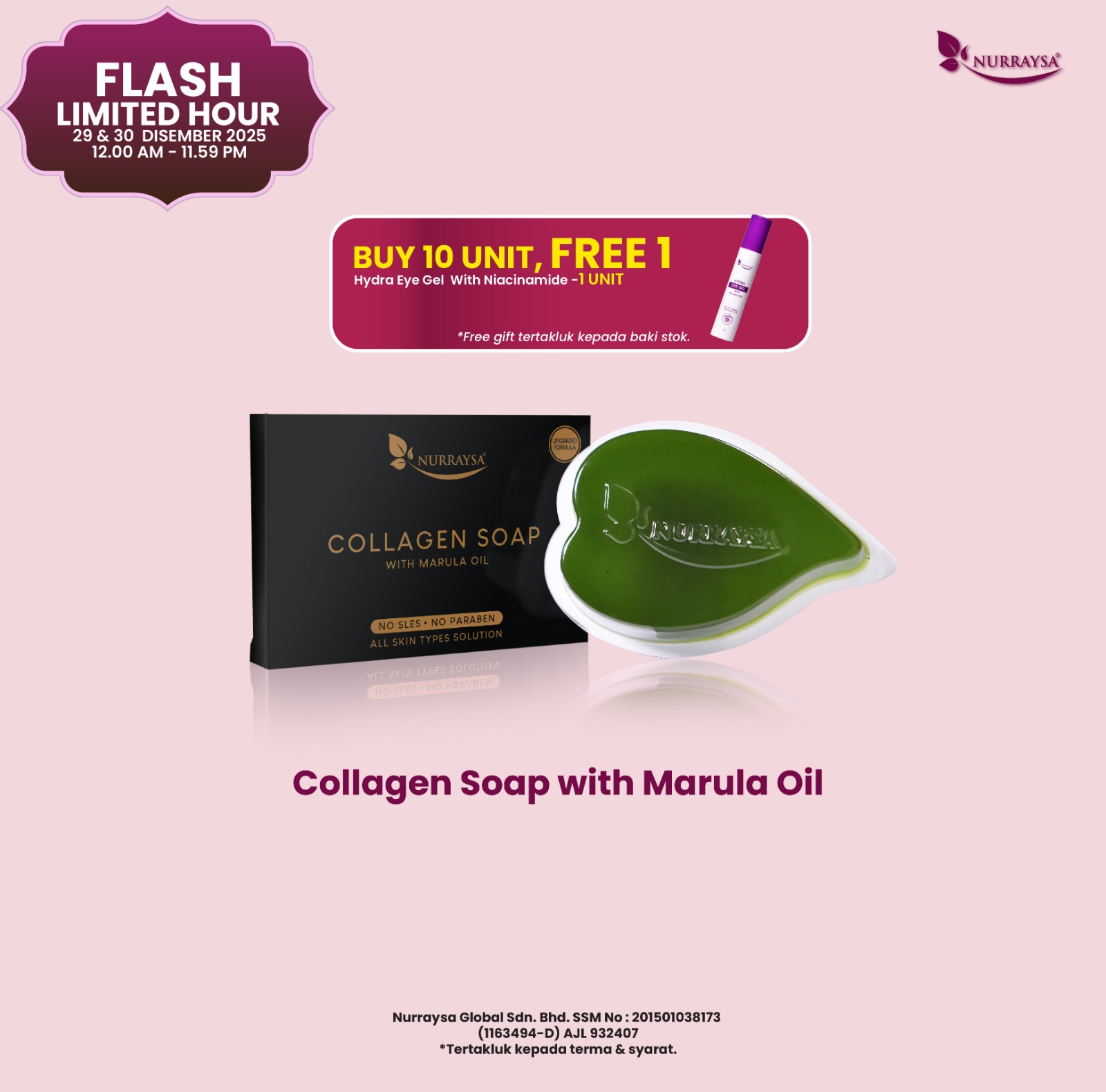 Raya Early Bird Beauty Sale 11 Disember-09 Januari : 10 Unit Collagen Soap With Marula Oil