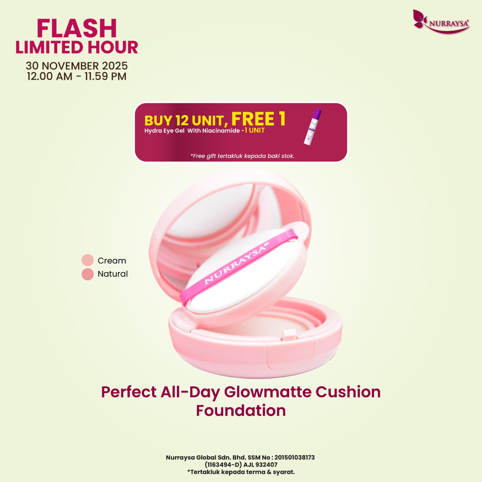 Promosi Produk Pilihan Halal 11 Nov-09 Dis : 10 Unit GlowMatte Cushion Foundation