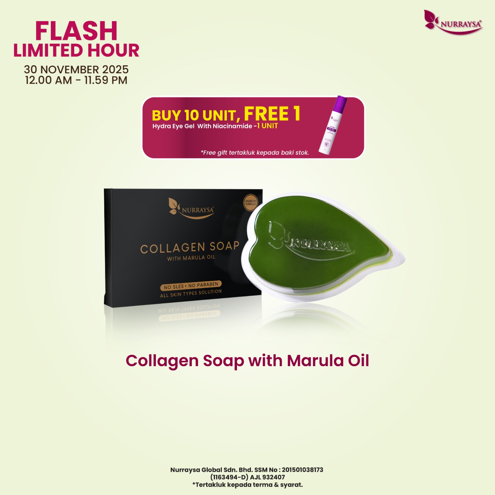 Promosi Produk Pilihan Halal 11 Nov-09 Dis : 10 Unit Collagen Soap With Marula Oil