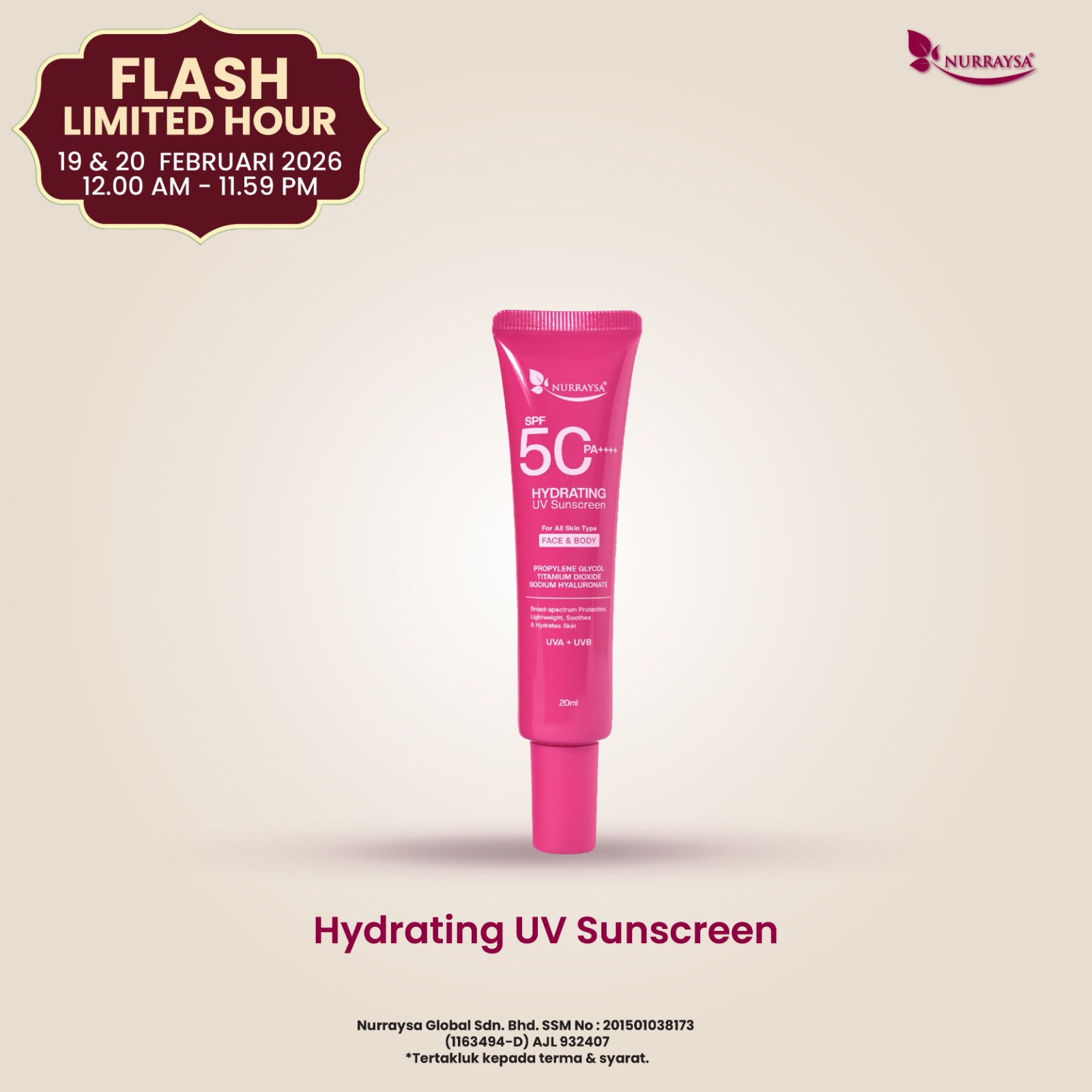 Flash Limited Hour 19-20 Februari : 2 Unit Hydrating UV Sunscreen