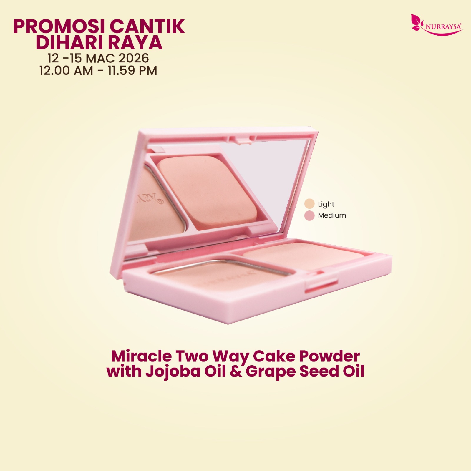 Promosi Cantik DiHari Raya 12-15 Mac : 1 Unit Miracle Two Way Cake Powder With Jojoba Oil