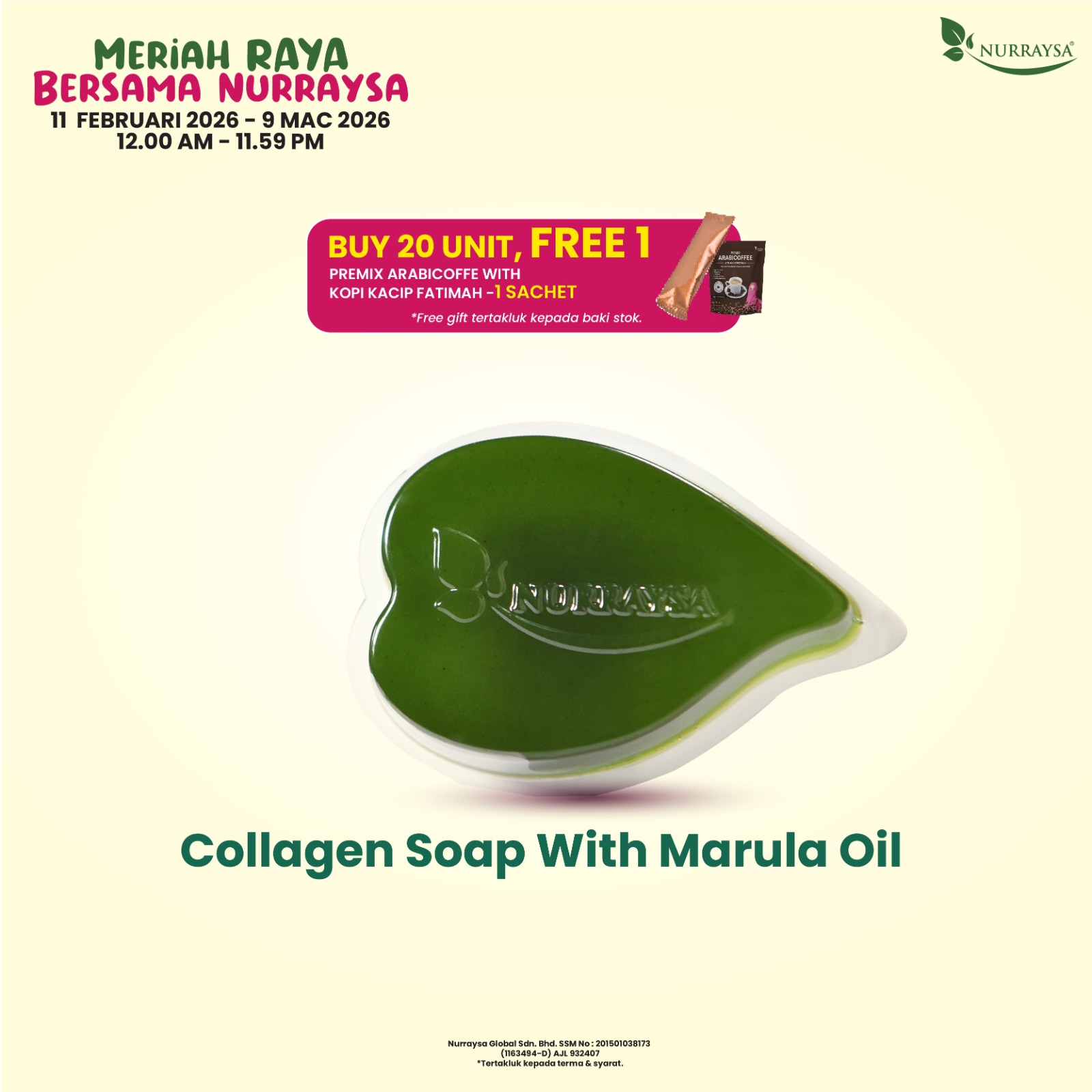 Meriah Raya Bersama Nurraysa 11 Feb-09 Mac : 2 Unit Collagen Soap With Marula Oil