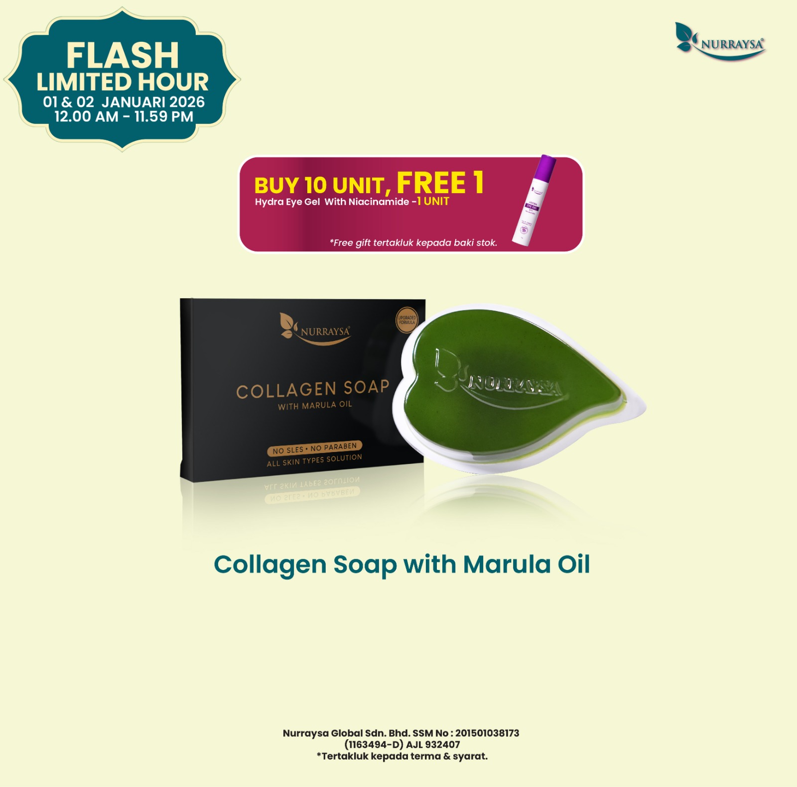 Raya Early Bird Beauty Sale 11 Disember-09 Januari : 10 Unit Collagen Soap With Marula Oil