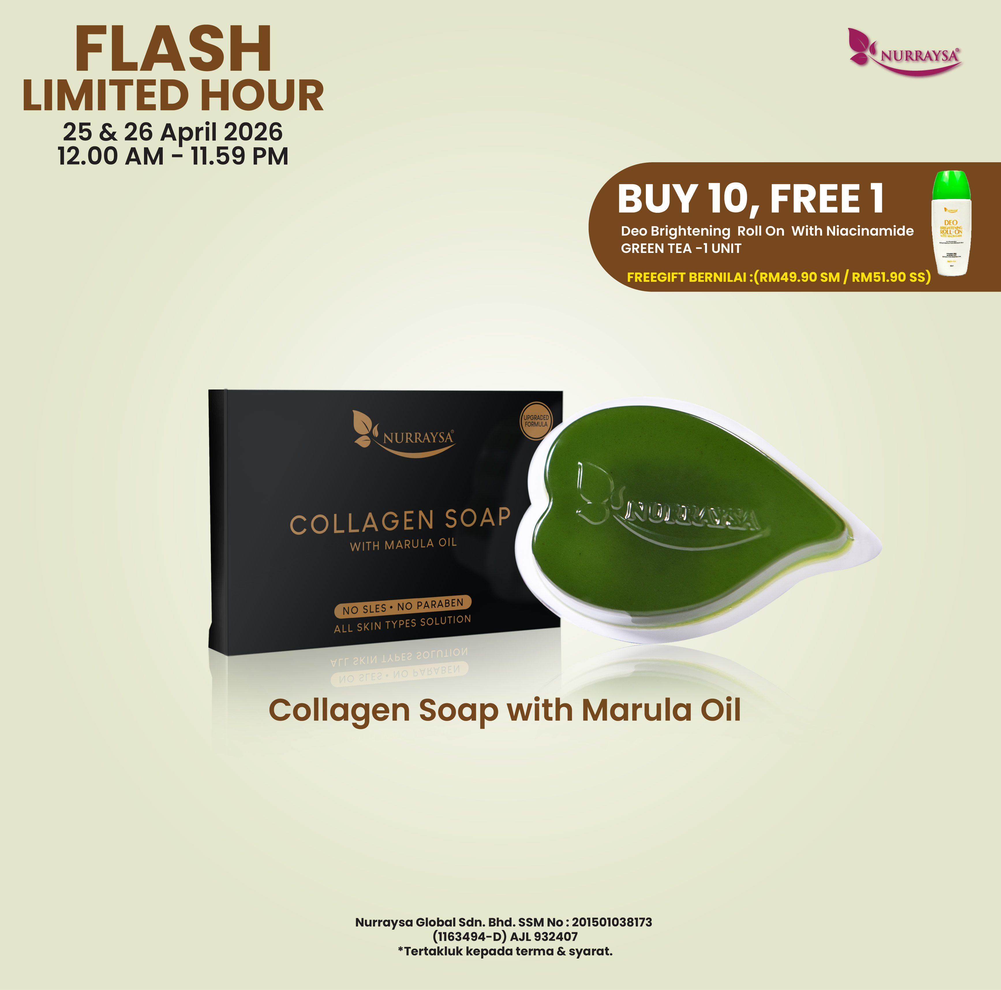 Nurraysa Glow Up Sale 11 April-09 Mei : 2 Unit Collagen Soap With Marula Oil
