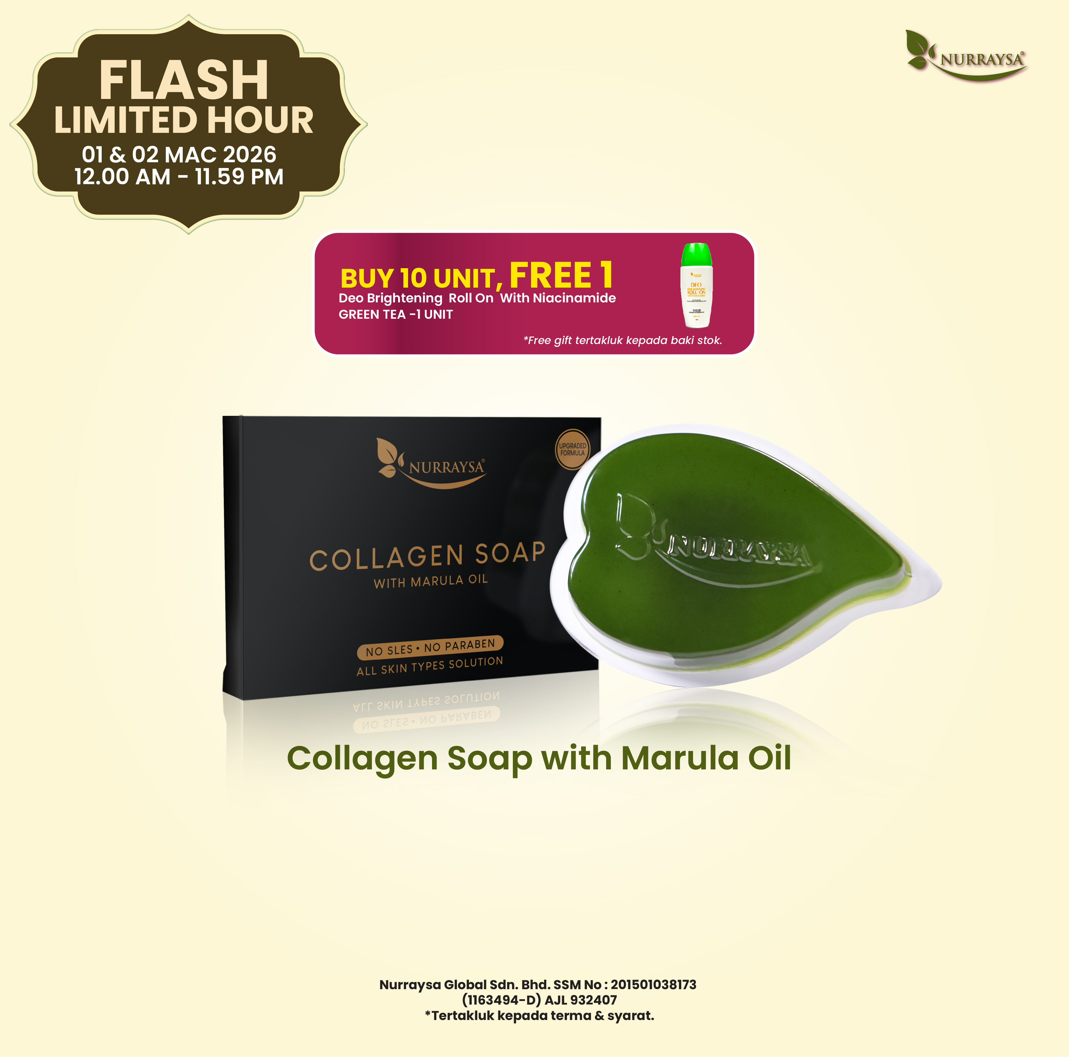 Meriah Raya Bersama Nurraysa 11 Feb-09 Mac : 2 Unit Collagen Soap With Marula Oil