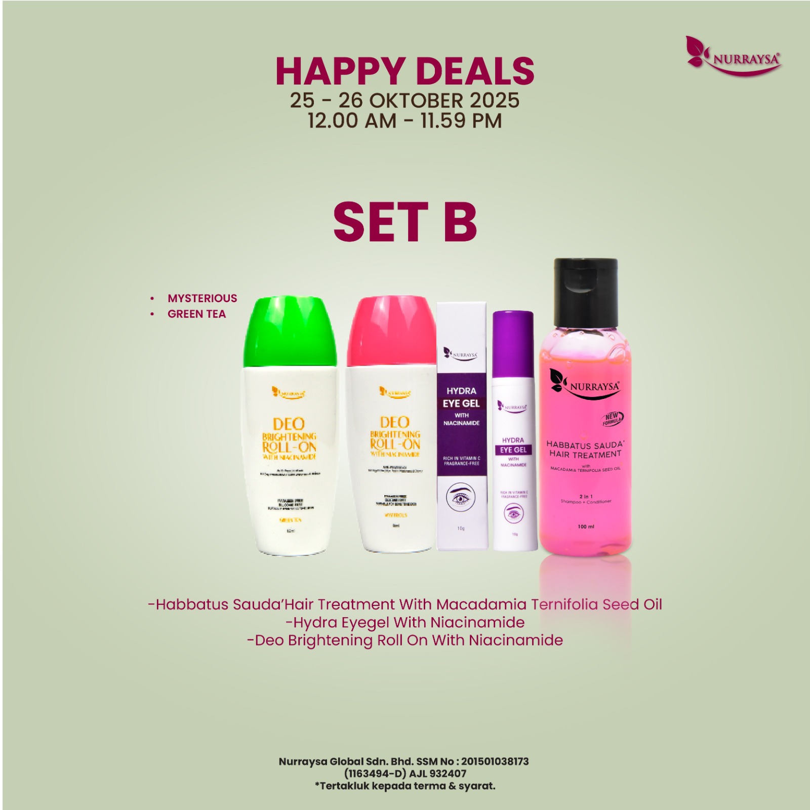 Happy Deals 25-26 Oktober : Set B(Habbatus Sauda'Hair+Deo+Eyegel)