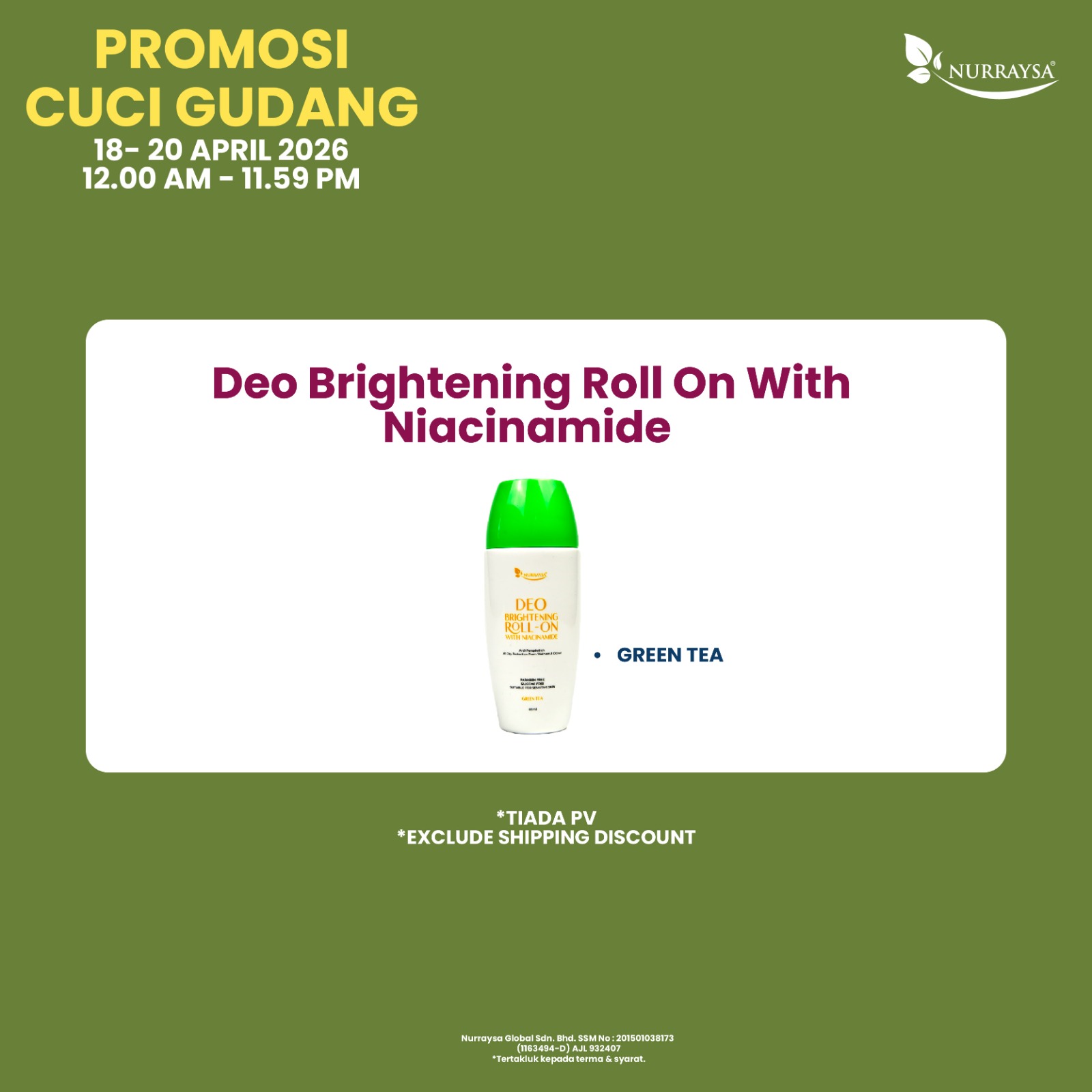 Promosi Cuci Gudang 18-20 April : 1 Unit Deo Brightening Roll (TIADA PV)