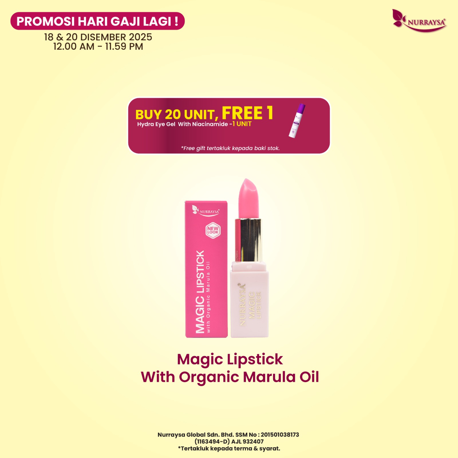 Promosi Hari Gaji Lagi 18-20 Disember : 1 Unit Magic Lipstick With Organic Marula Oil