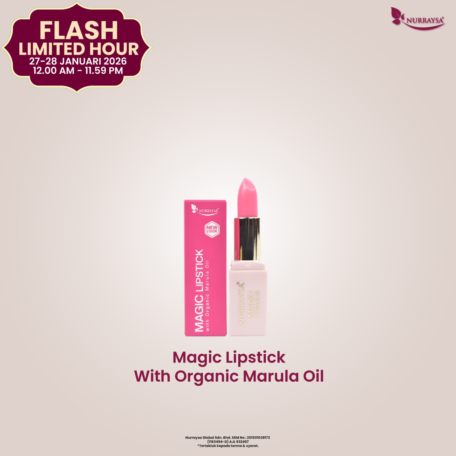 Nurraysa Glow-Up Raya 11 Januari-09 Februari : 20 Unit Magic Lipstick with Marula Oil
