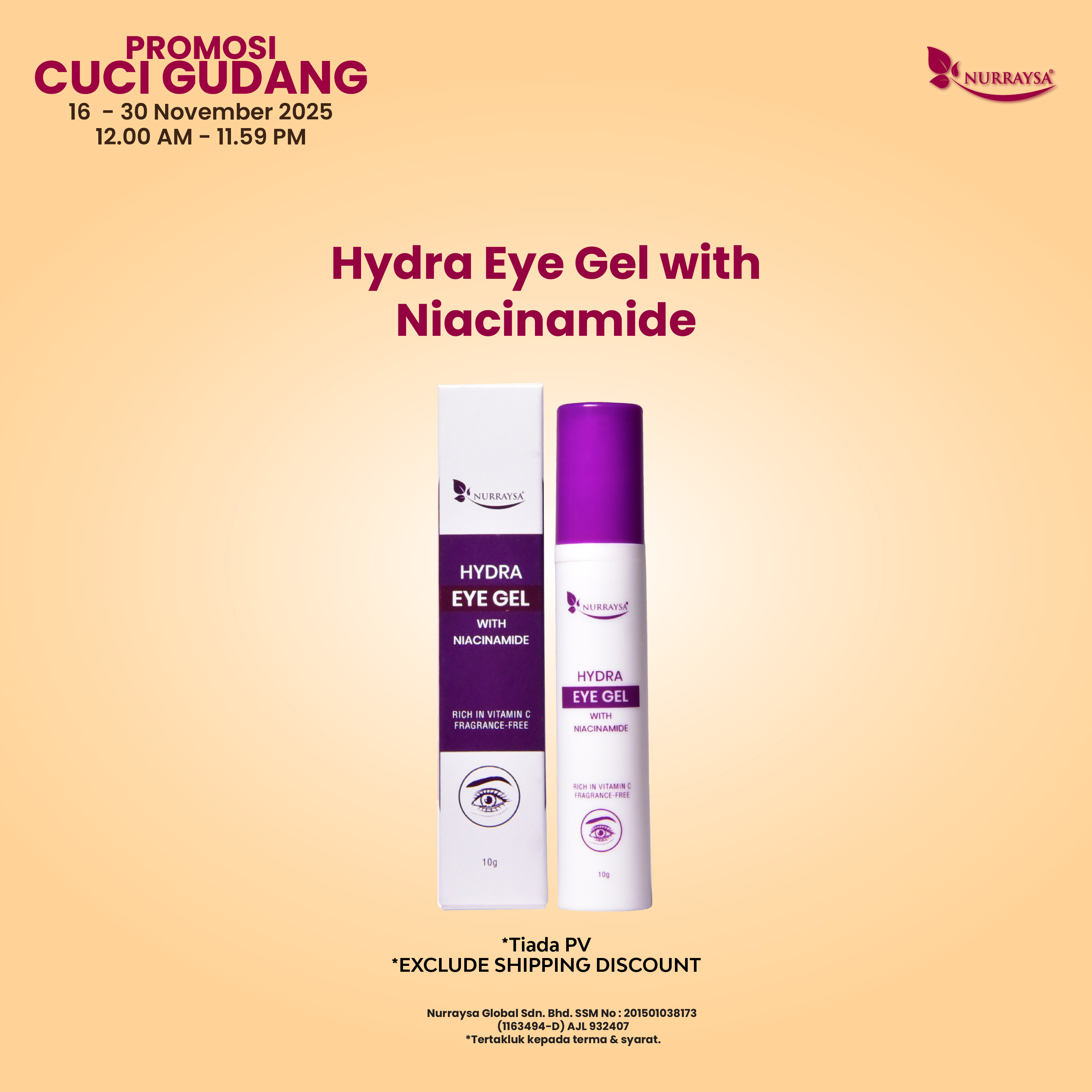 Cuci Gudang 16 - 30 November : 1 Unit Hydra Eye Gel with Niacinamide (TIADA PV)
