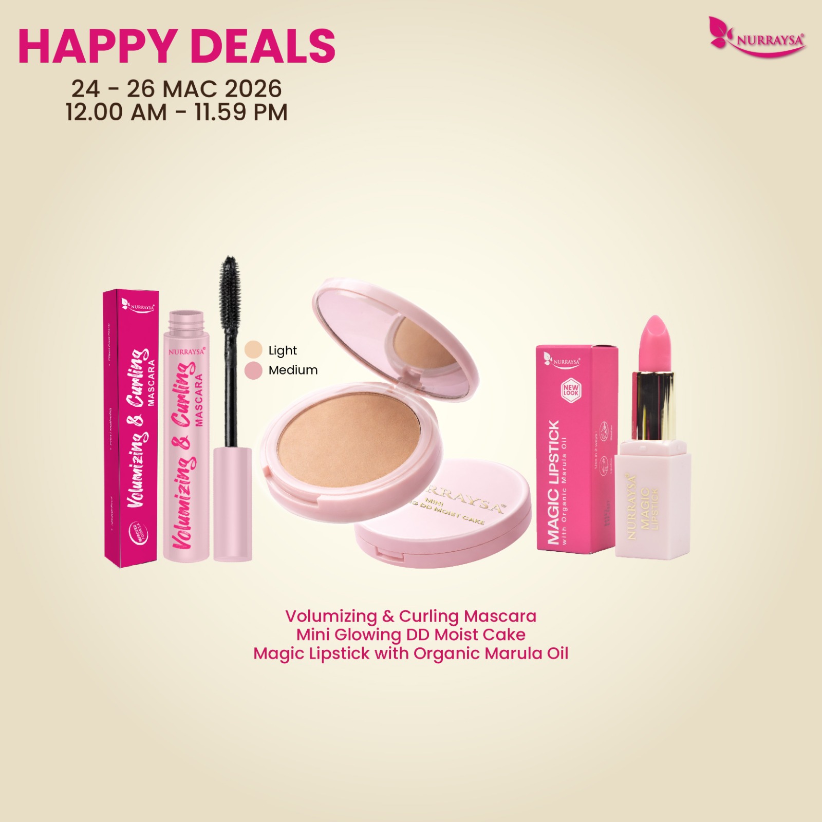 Happy Deals 24-26 Mac : Set A (Mascara+Magic Lipstick+Mini Glowing DD)