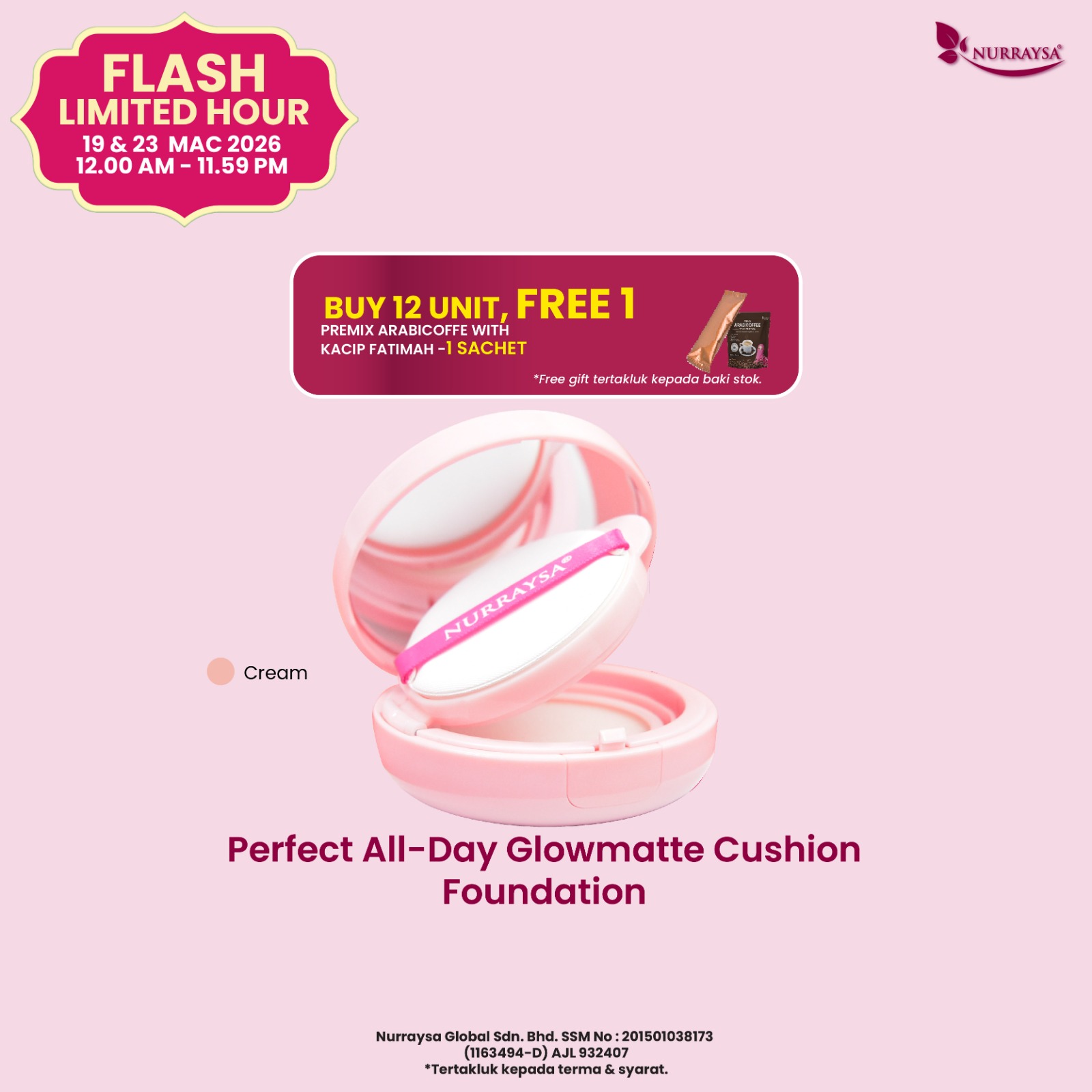 Nurraysa Beauty Raya 11 Mac-09 April : 1 Set Hotset Raya (Cushion FD)